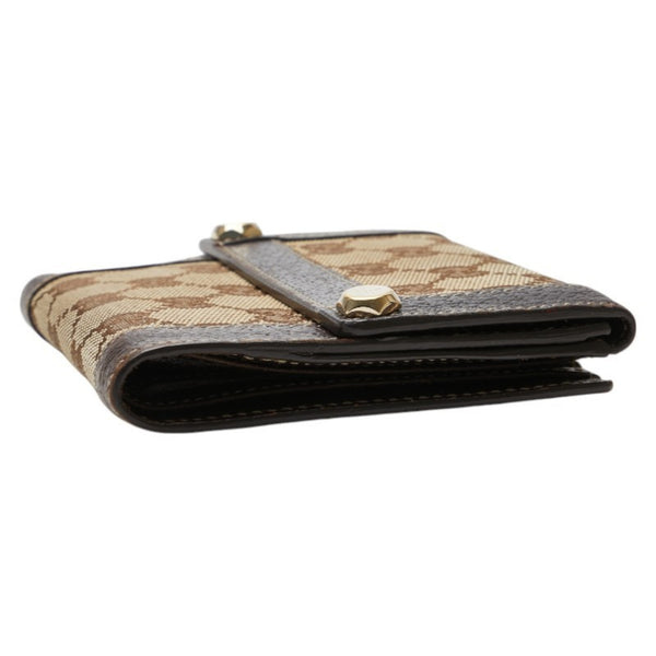 Gucci GG Canvas Bifold Wallet 154117 Beige Brown Leather Women\'s GUCCI