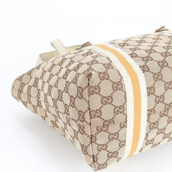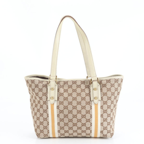 Gucci GG Canvas Leather Tote Bag with Charm, Shoulder Bag, Handbag, 137396, Gold Hardware, Women\'s
