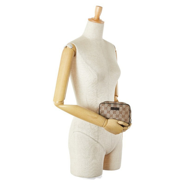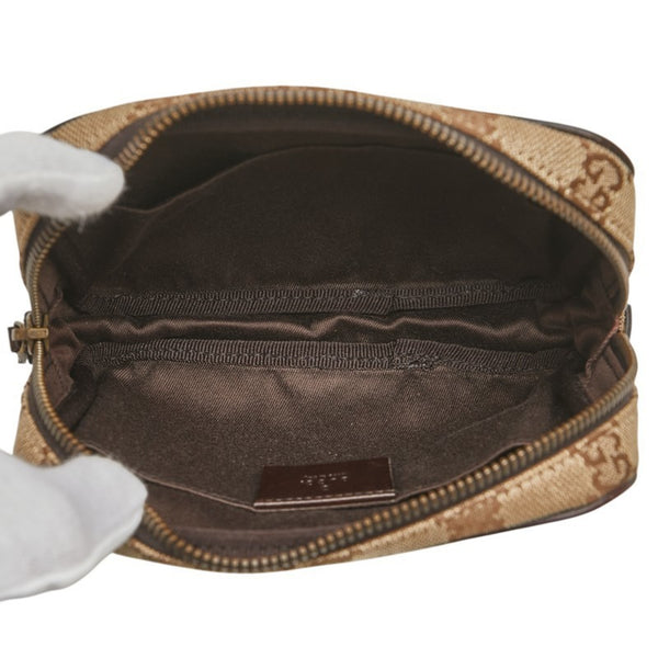 Gucci GG Canvas Pouch 106647 Beige Brown Leather Women\'s GUCCI