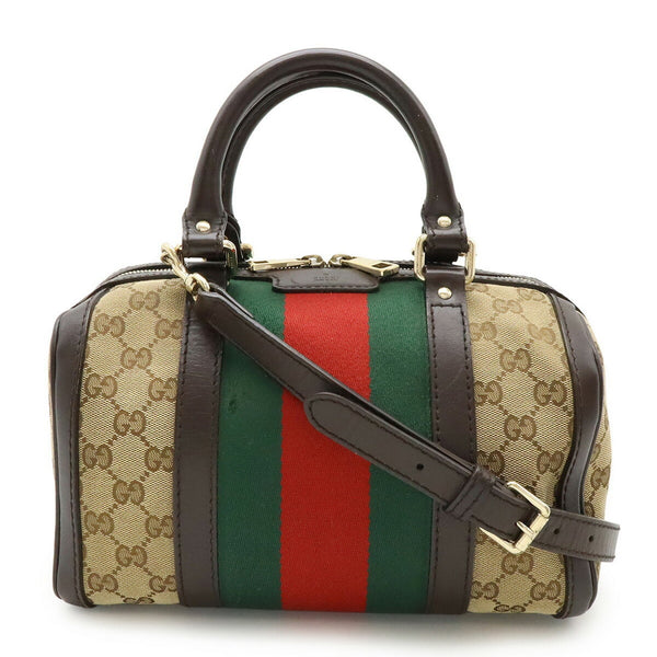 GUCCI GG Canvas Sherry Line Handbag/Shoulder Bag in Khaki Beige and Bordeaux Leather (269876)