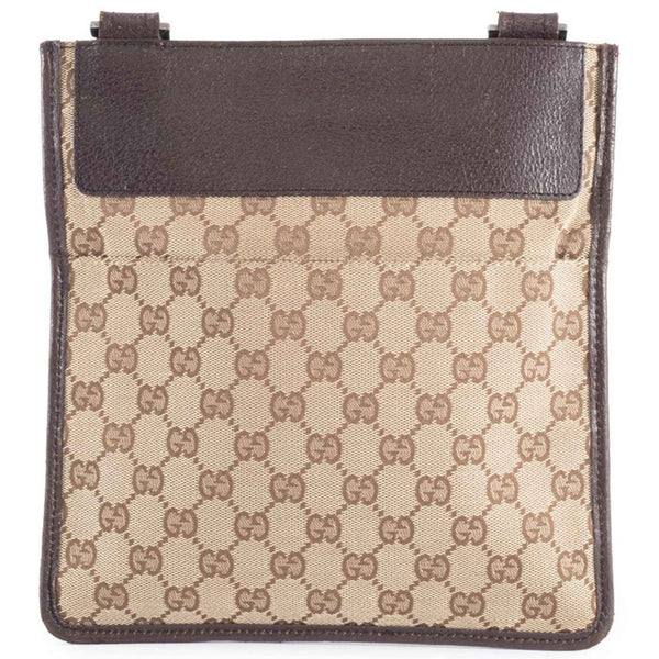 Gucci GG Canvas Shoulder Bag in Brown and Beige Leather (27639)