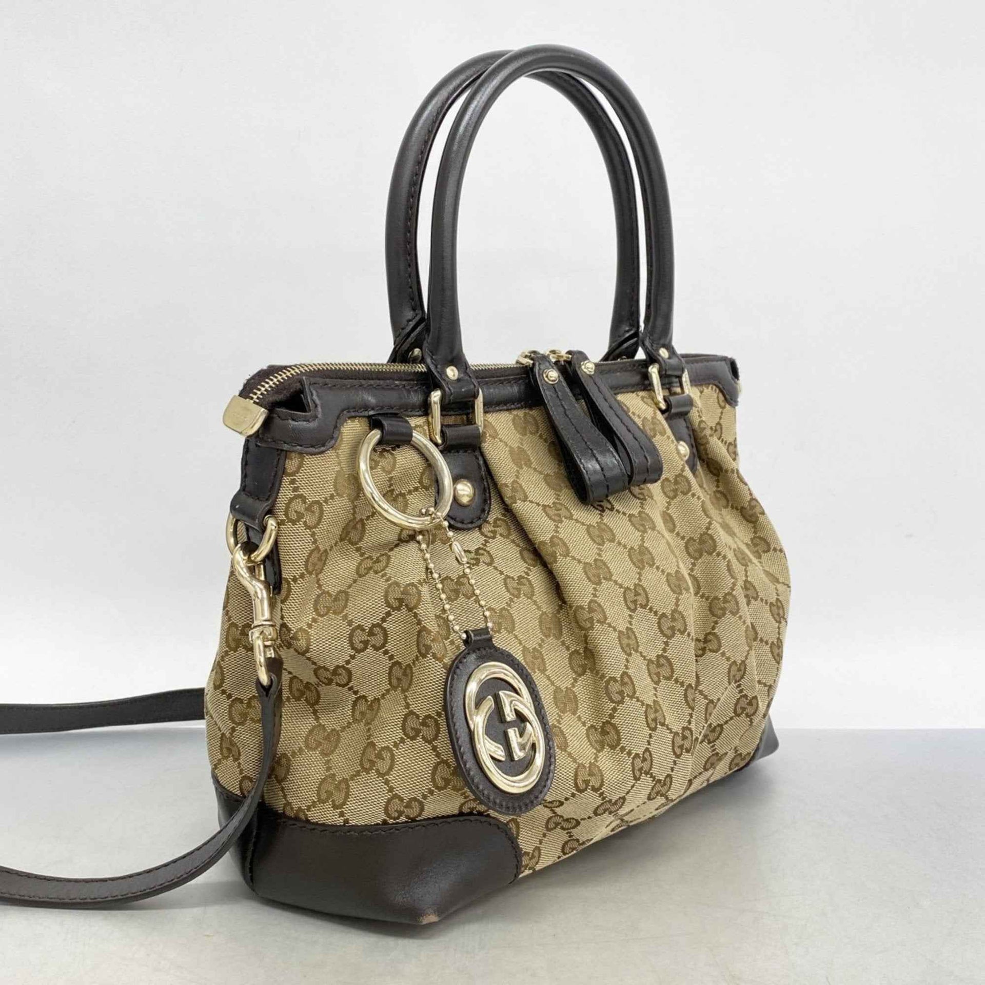 Gucci GG Canvas Sukey Handbag 247902 Beige Brown Champagne 2-Way Bag for Women