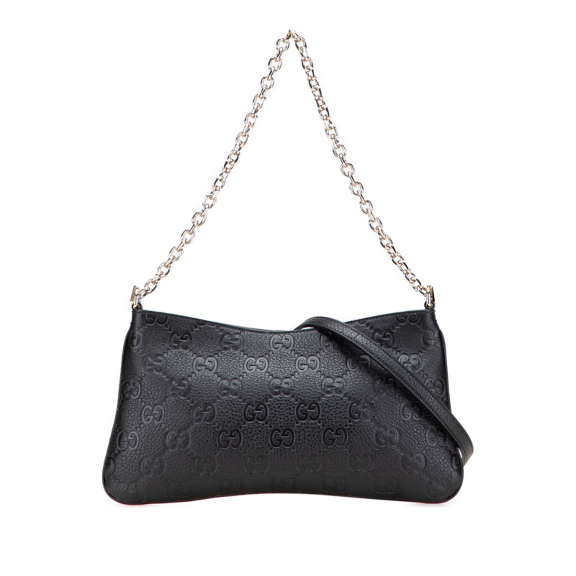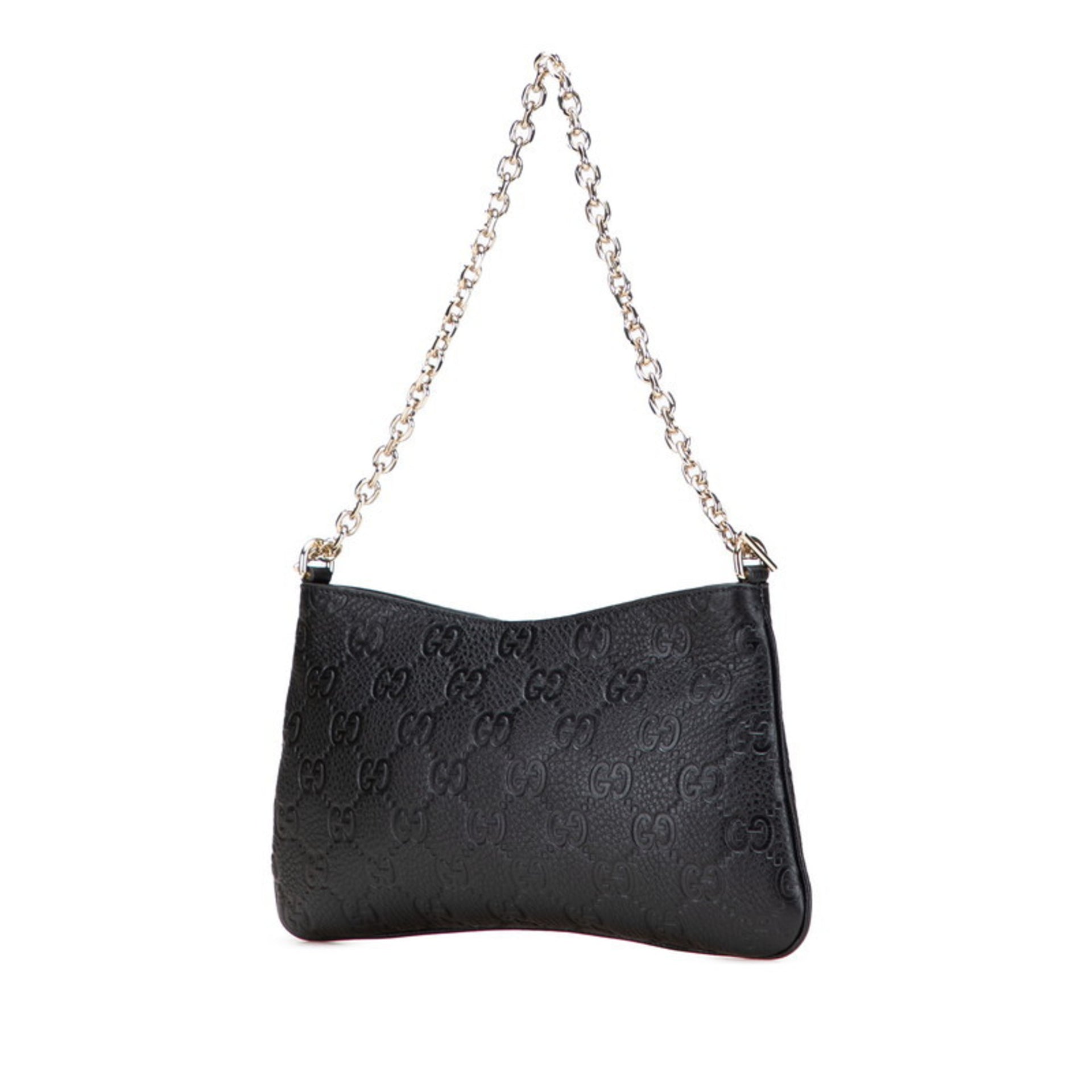 Gucci GG Emblem Medium Chain Handbag/Shoulder Bag 2WAY 815277 Black Leather Women\'s GUCCI