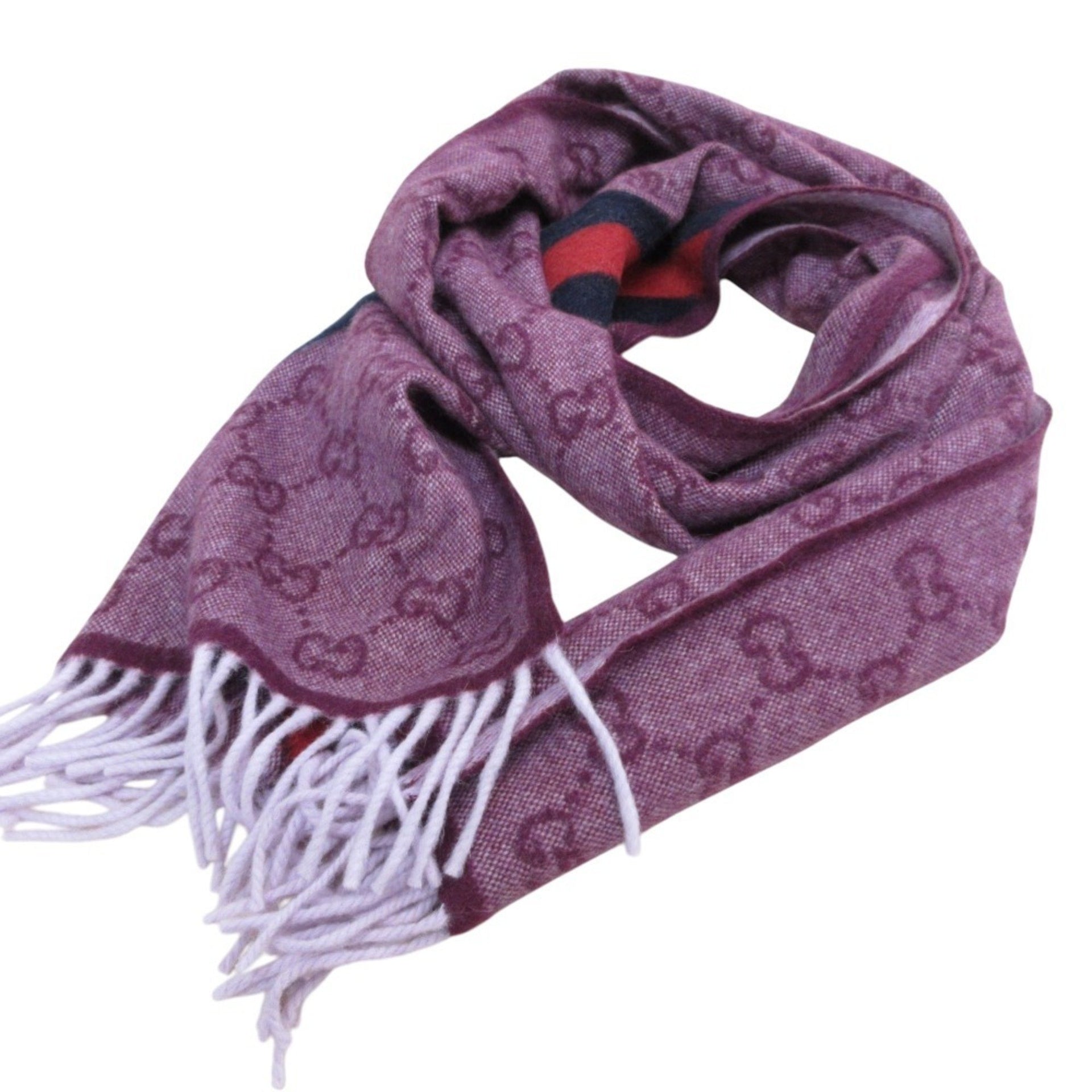 GUCCI GG Jacquard Web Line Fringe Scarf/Shawl Purple Women\'s