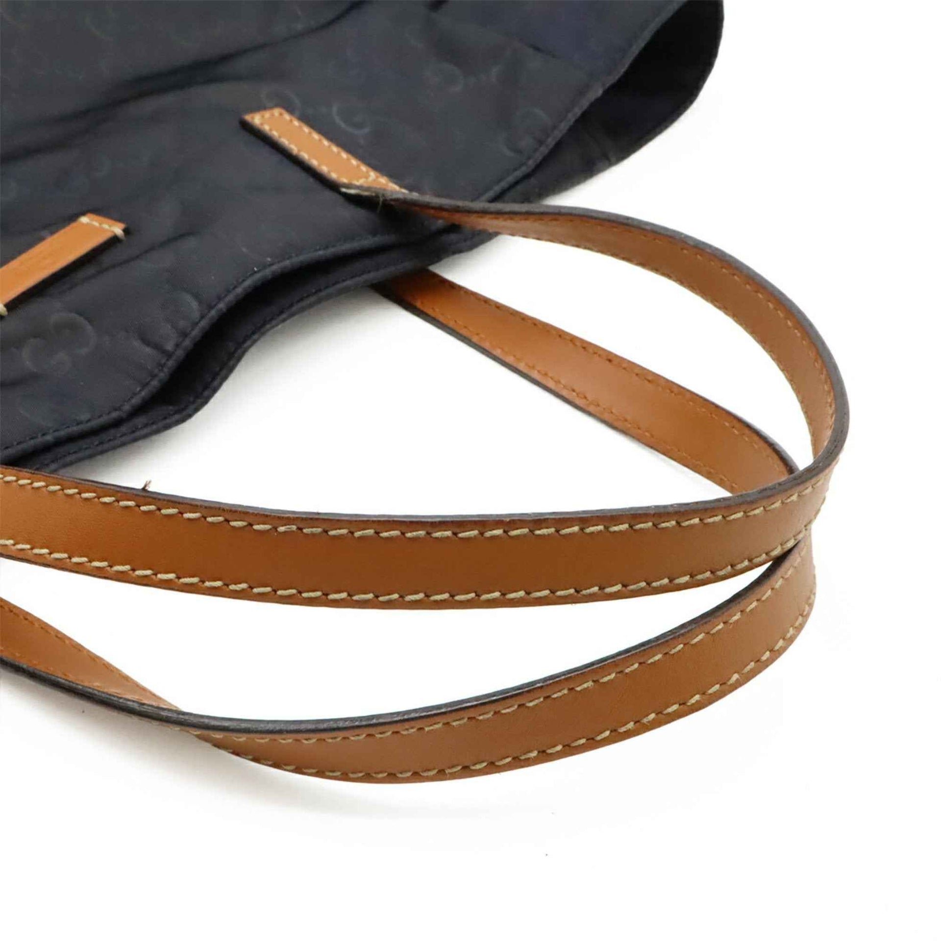 GUCCI GG Nylon Tote Bag, Handbag, and Leather, Black, Brown, 282439