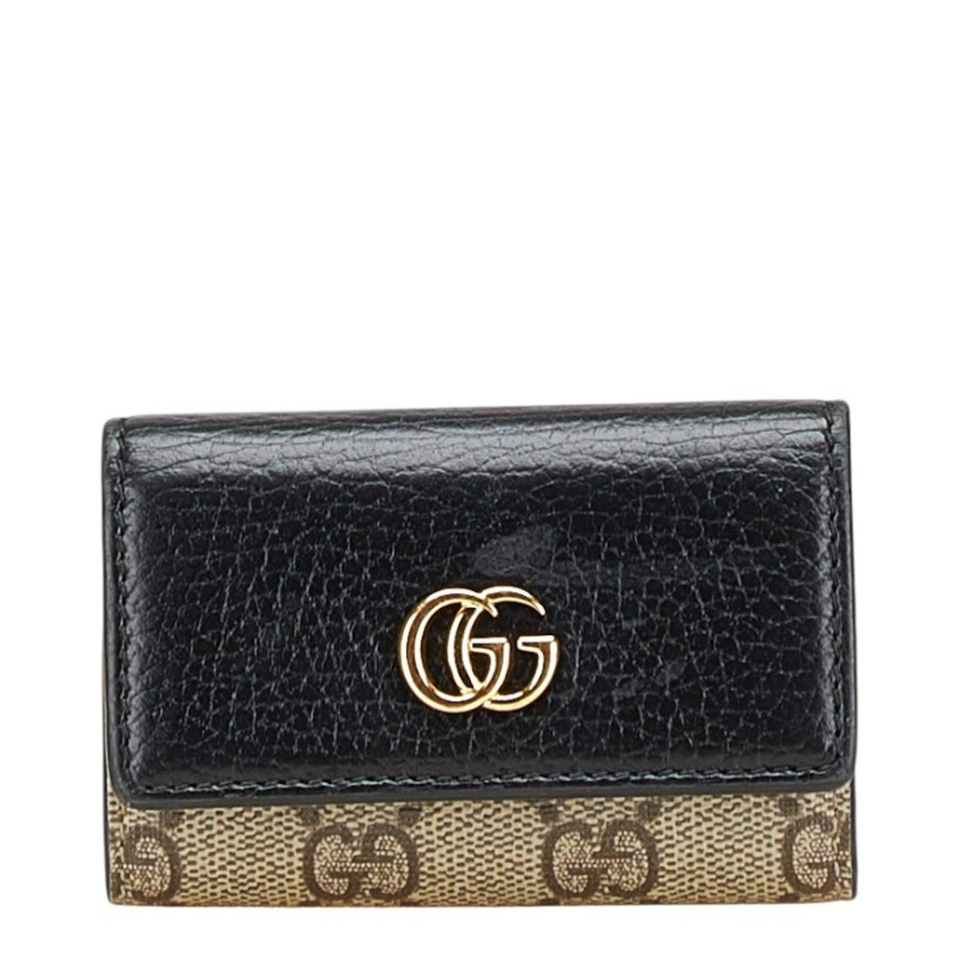 Gucci GG Supreme Marmont 6-ring key case 456118 Black Leather Women\'s GUCCI