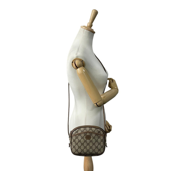 GUCCI GG Supreme Shoulder Bag, Brown Leather with Gold Hardware, Crossbody/Diagonal Sling, Vintage Gucci Pattern, Women\'s, Z3