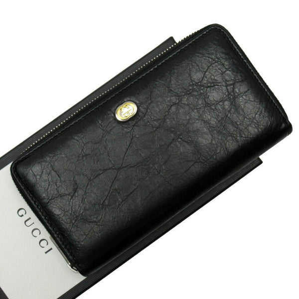 Gucci GUCCI round wallet GG black silver gold leather 575988