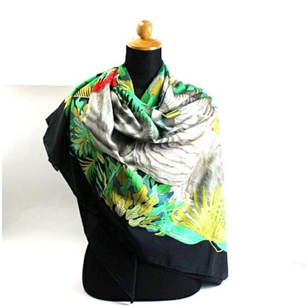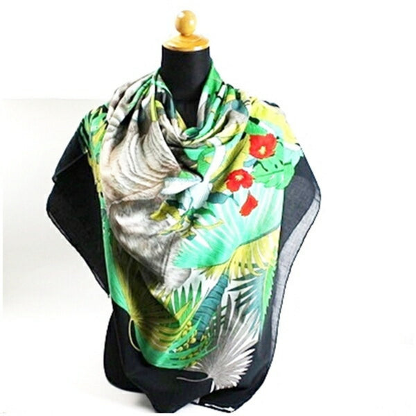 Gucci Large Cotton Scarf Black x Multicolor Elephant GUCCI Women\'s