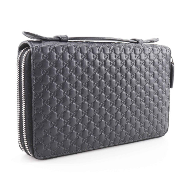 Gucci Micro Travel Document Case, Long Wallet, Shimmer Leather, Black, Outlet, 449246, Men\'s