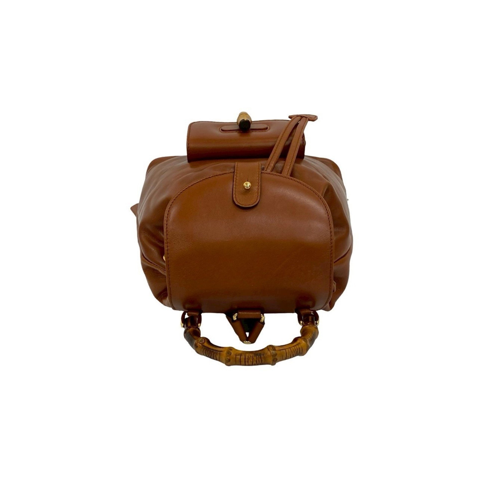 GUCCI Old Gucci Bamboo Turnlock Leather Mini Rucksack/Daypack Brown 434-3