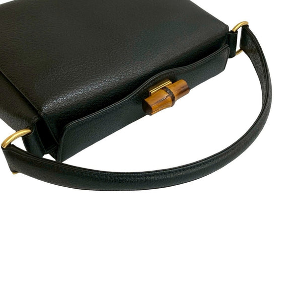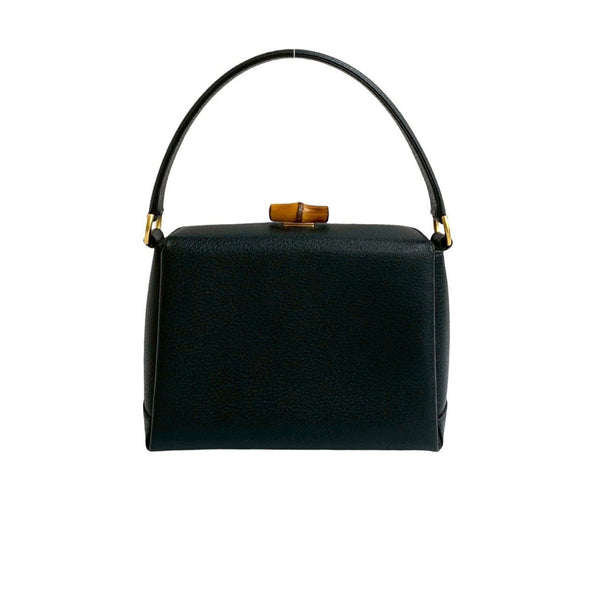GUCCI Old Gucci Turnlock Bamboo Leather 2-Way Handbag/Shoulder Bag, Black, 37895