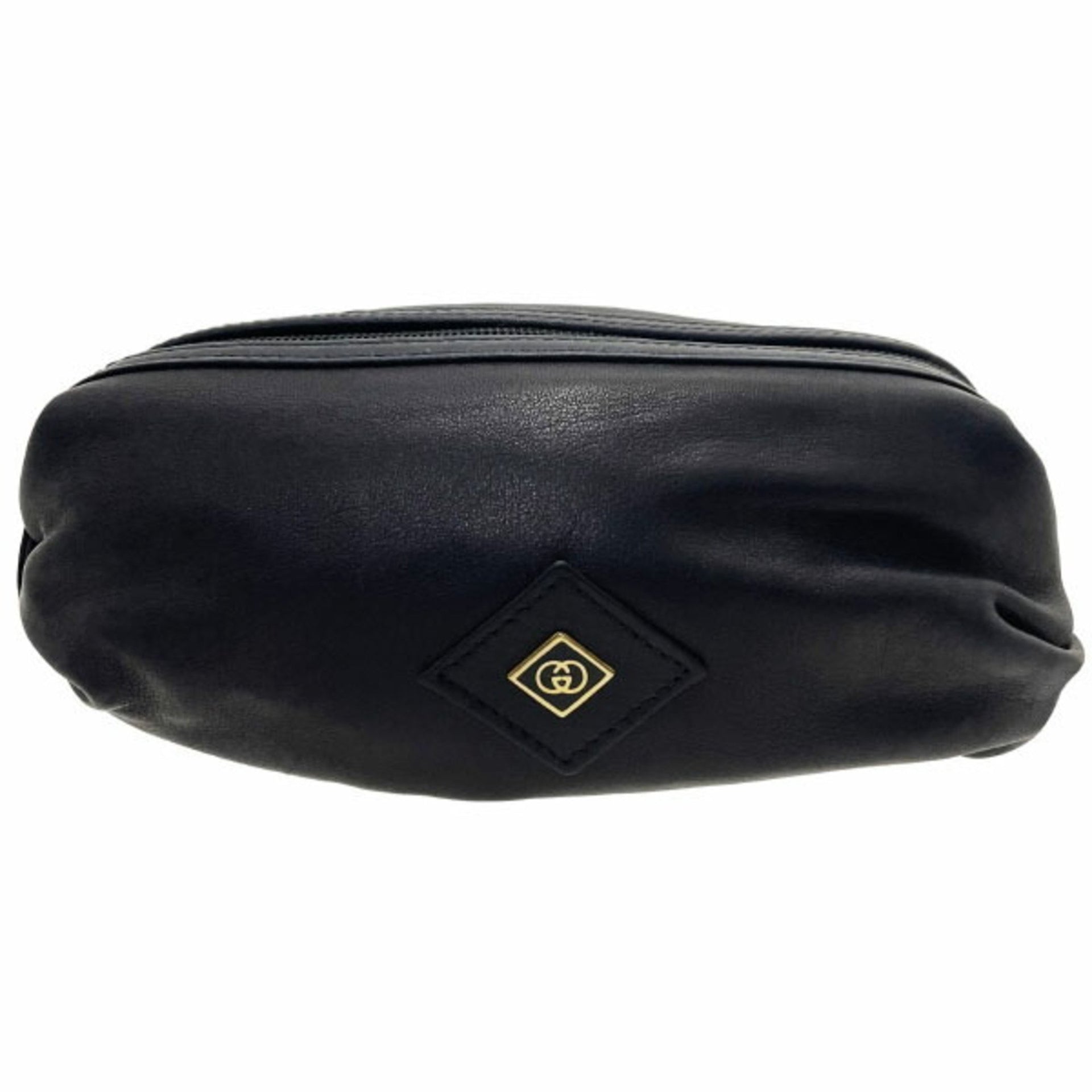 Gucci Pouch Old Multi Leather Black 039 416 GUCCI Interlocking G GG Gathered Pleated NN-15395