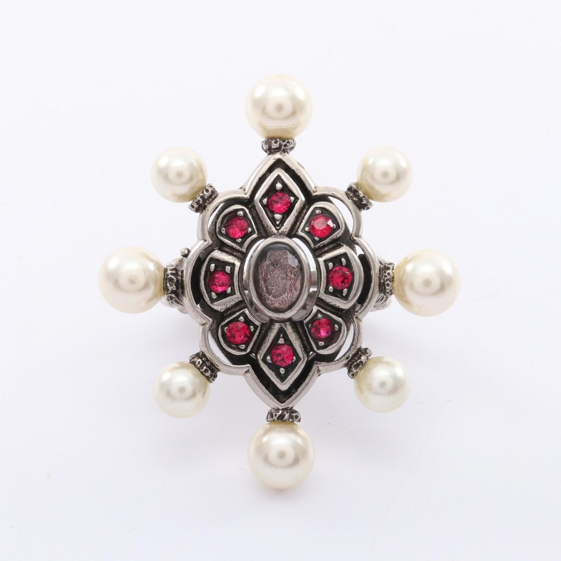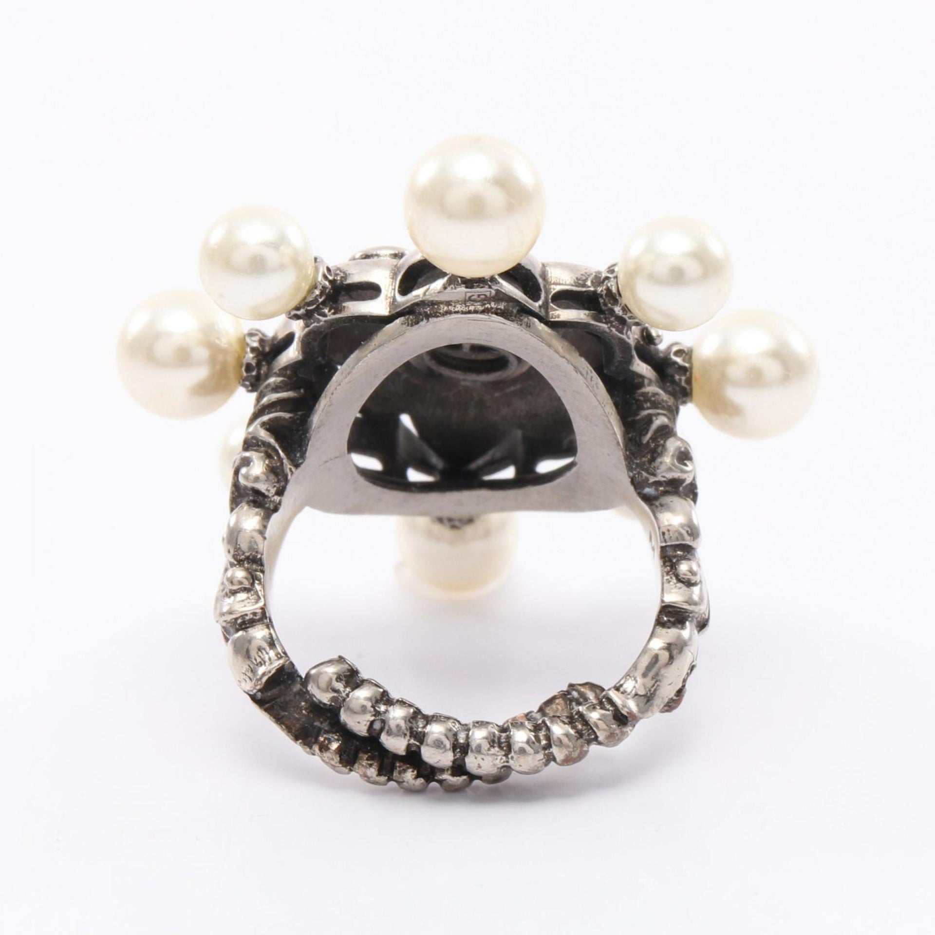 Gucci rings and jewelry in stainless steel with faux pearls rhinestones for women silver, white, pink.