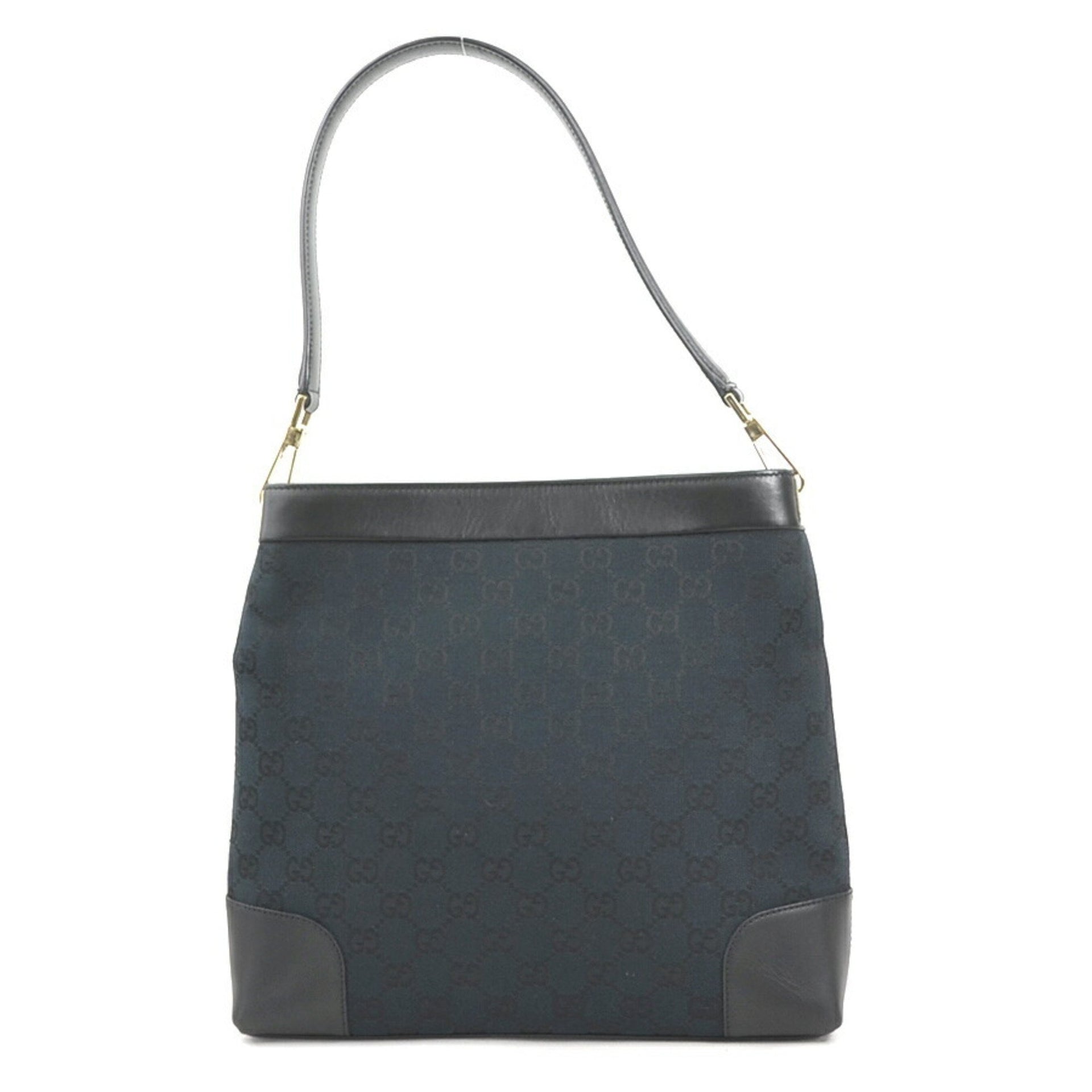 GUCCI Shoulder Bag GG Canvas Leather Black Silver Women\'s e60337g