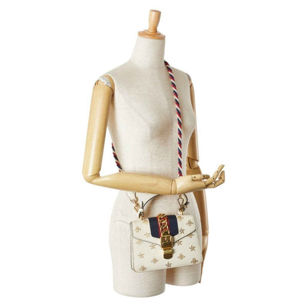 Gucci Sylvie Star Bee Handbag/Shoulder Bag 2-Way 470270 Ivory Leather Women\'s GUCCI