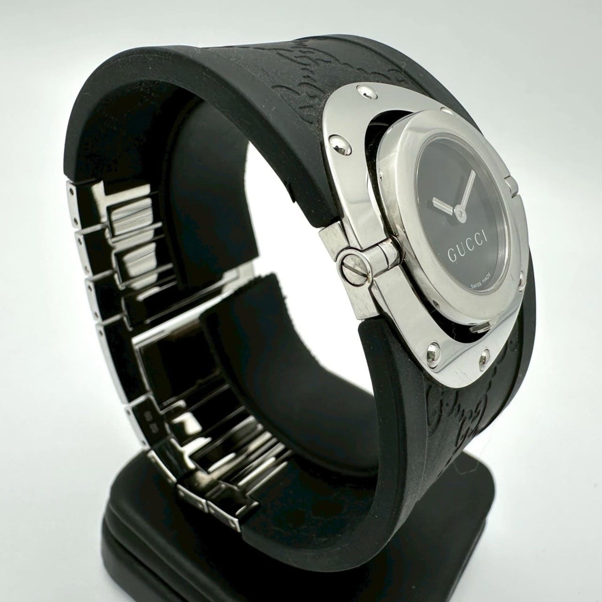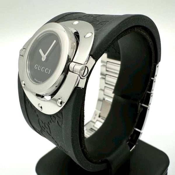 GUCCI Toile Bangle Watch 112 GG Rubber Quartz Black Women\'s