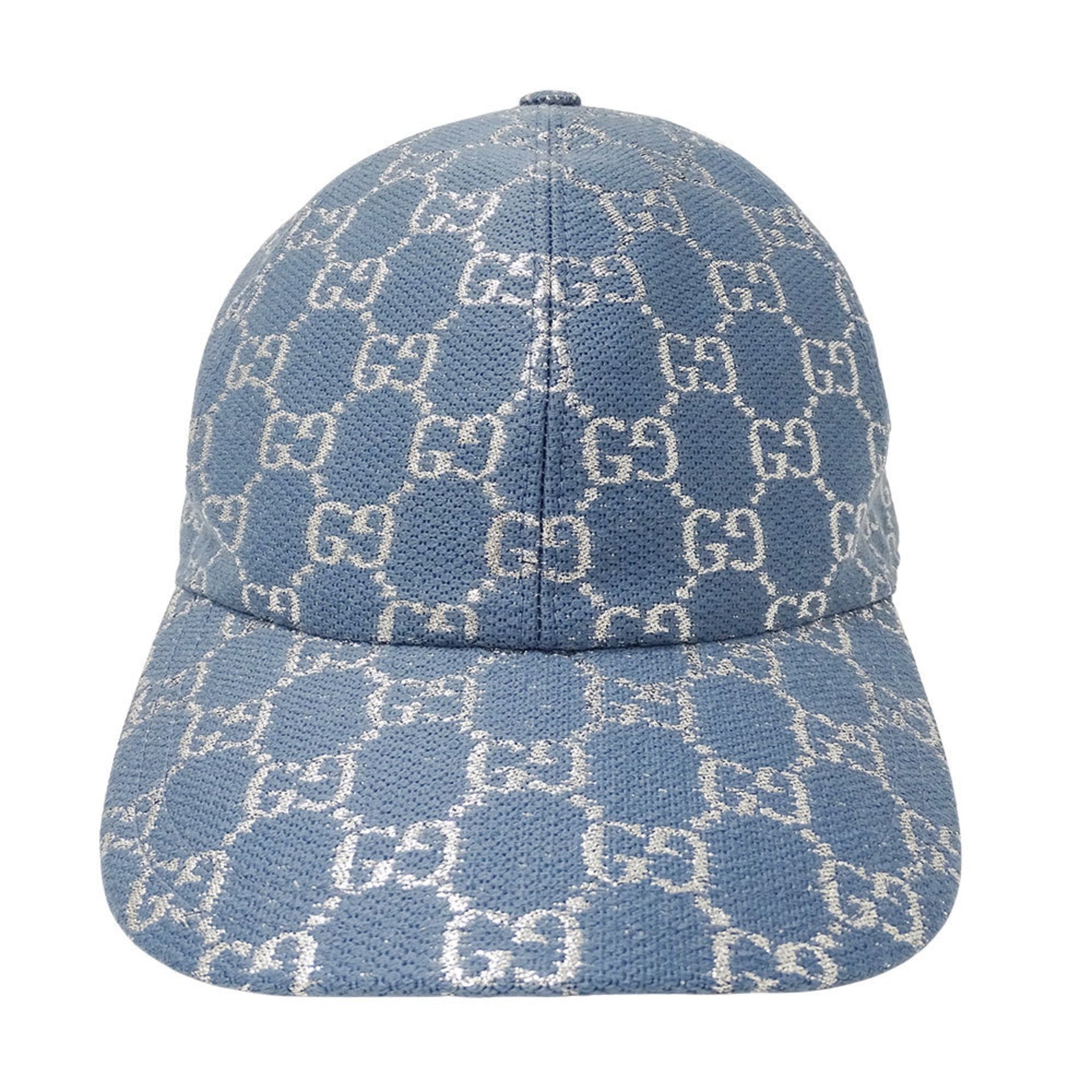 Gucci Women\'s GG Lamé Wool and Nylon Baseball Cap, Blue, Size 631953, M, 57cm, Sporty Design