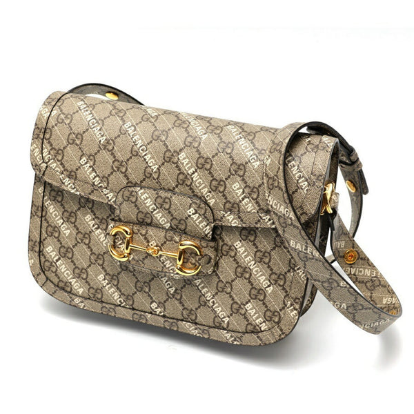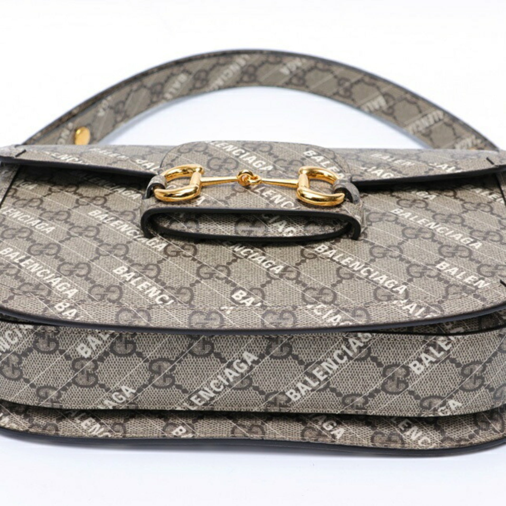 Gucci x Balenciaga Horsebit 1955 Shoulder Bag 602204 GG Supreme Greige E-157717