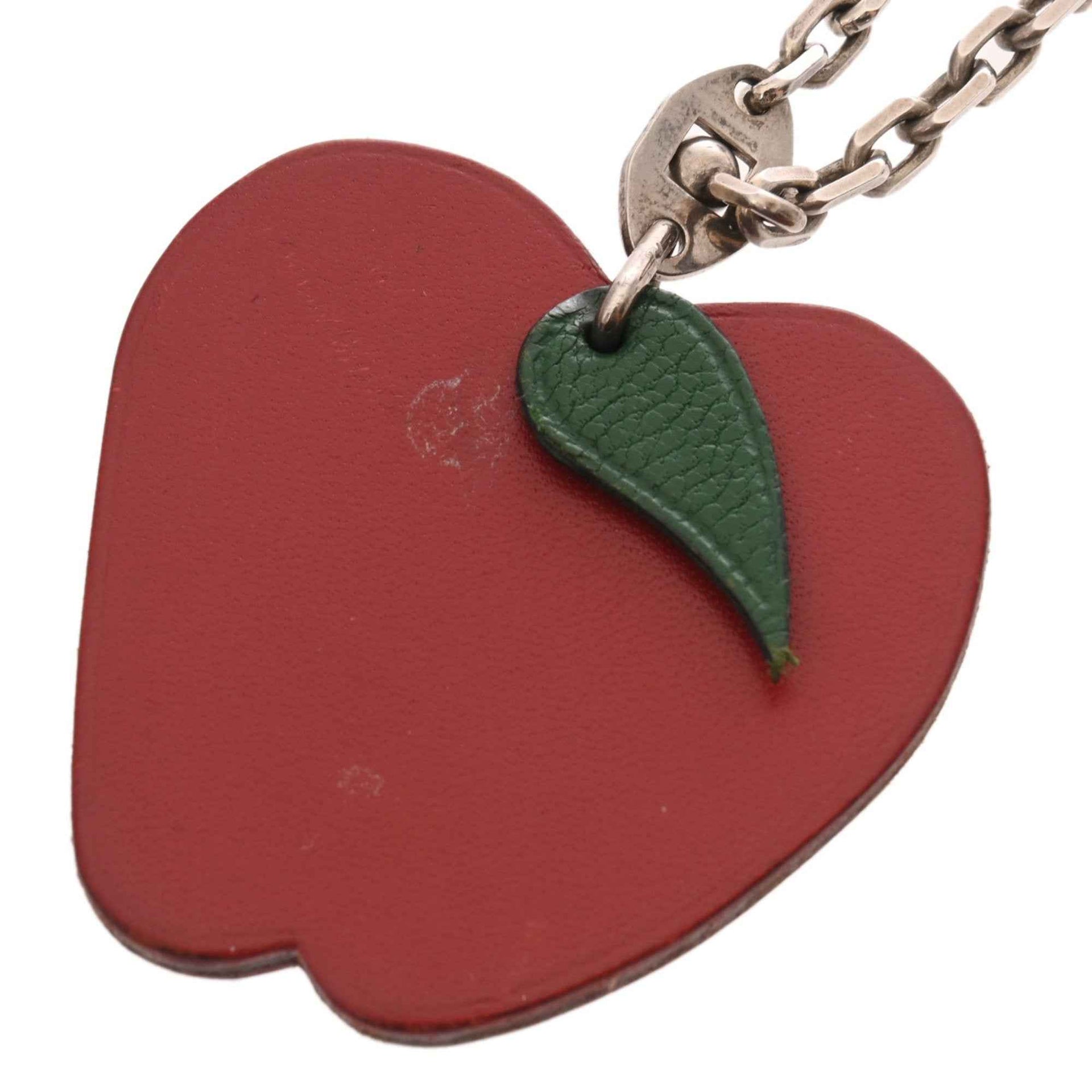 HERMES Apple Motif Bag Charm, Red/Green, Women\'s Leather Keychain, AB Rank, Pre-owned, Ginzo