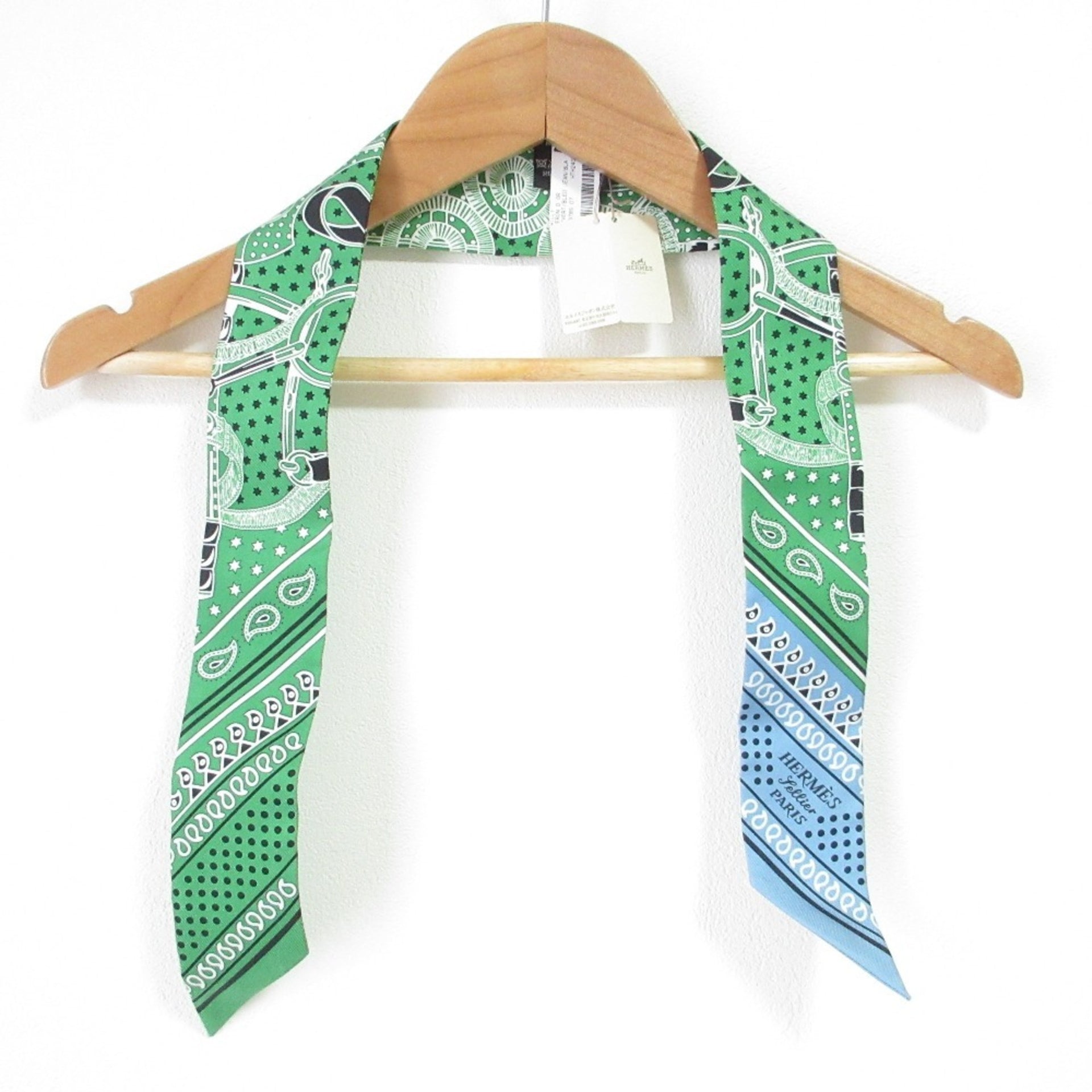 HERMES Apron d\'Or Silk Twilly Scarf Green Women\'s