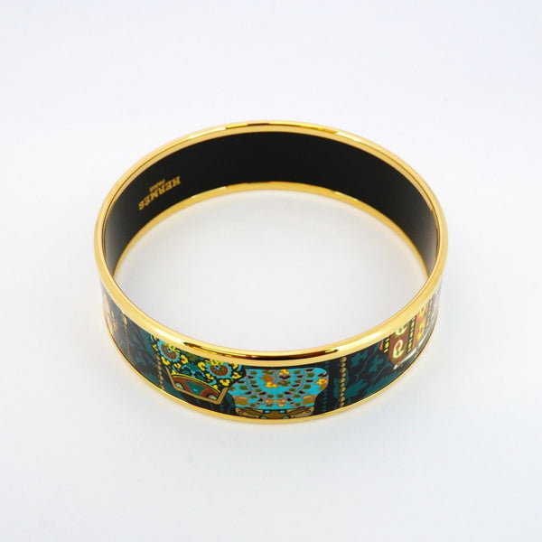 Hermes Bangle, GM Glazed, GP Plated, Cloisonné, Gold, Green, Multicolor, Women\'s