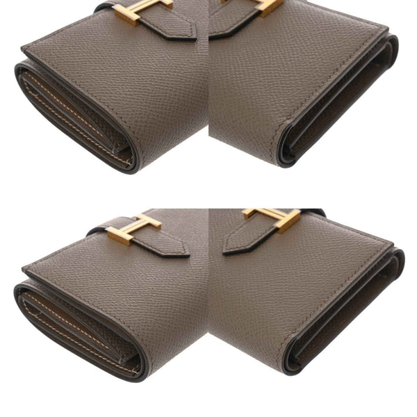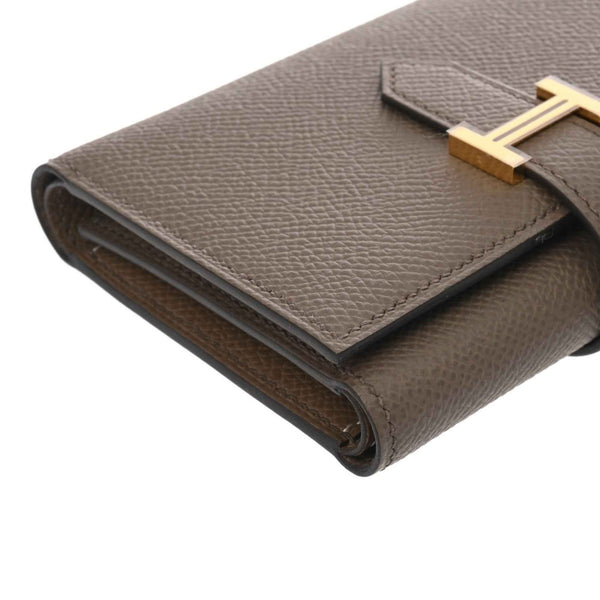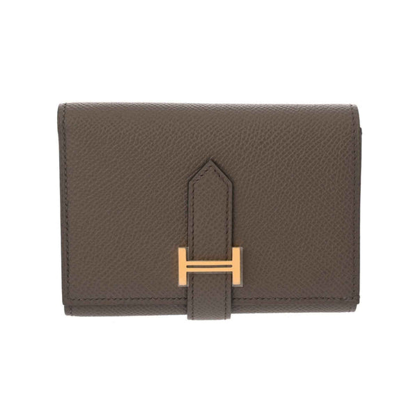 HERMES Bearn Combination Verso Etain/Etoupe W Stamp (circa 2024) Women\'s Epsom Leather Tri-fold Wallet, Unused