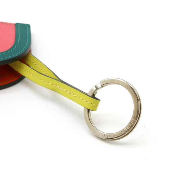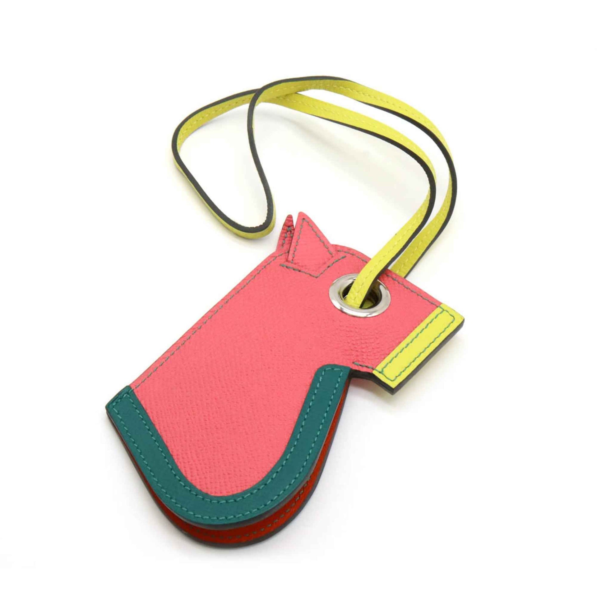 HERMES Camayle Bag Charm Keychain Horse Motif Epsom Leather Rose Azalee Malachite Lime A Stamp