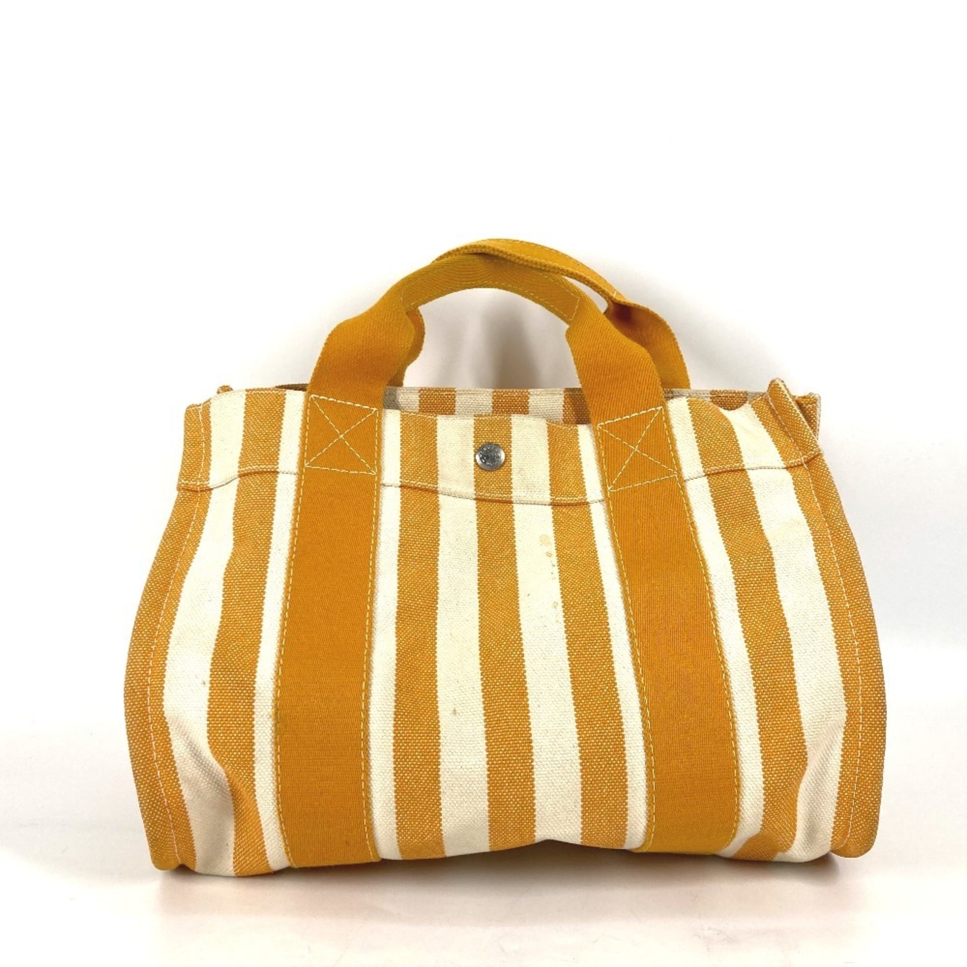 HERMES Cannes PM Striped Tote Bag with Pouch, Canvas Handbag, Women\'s, Orange