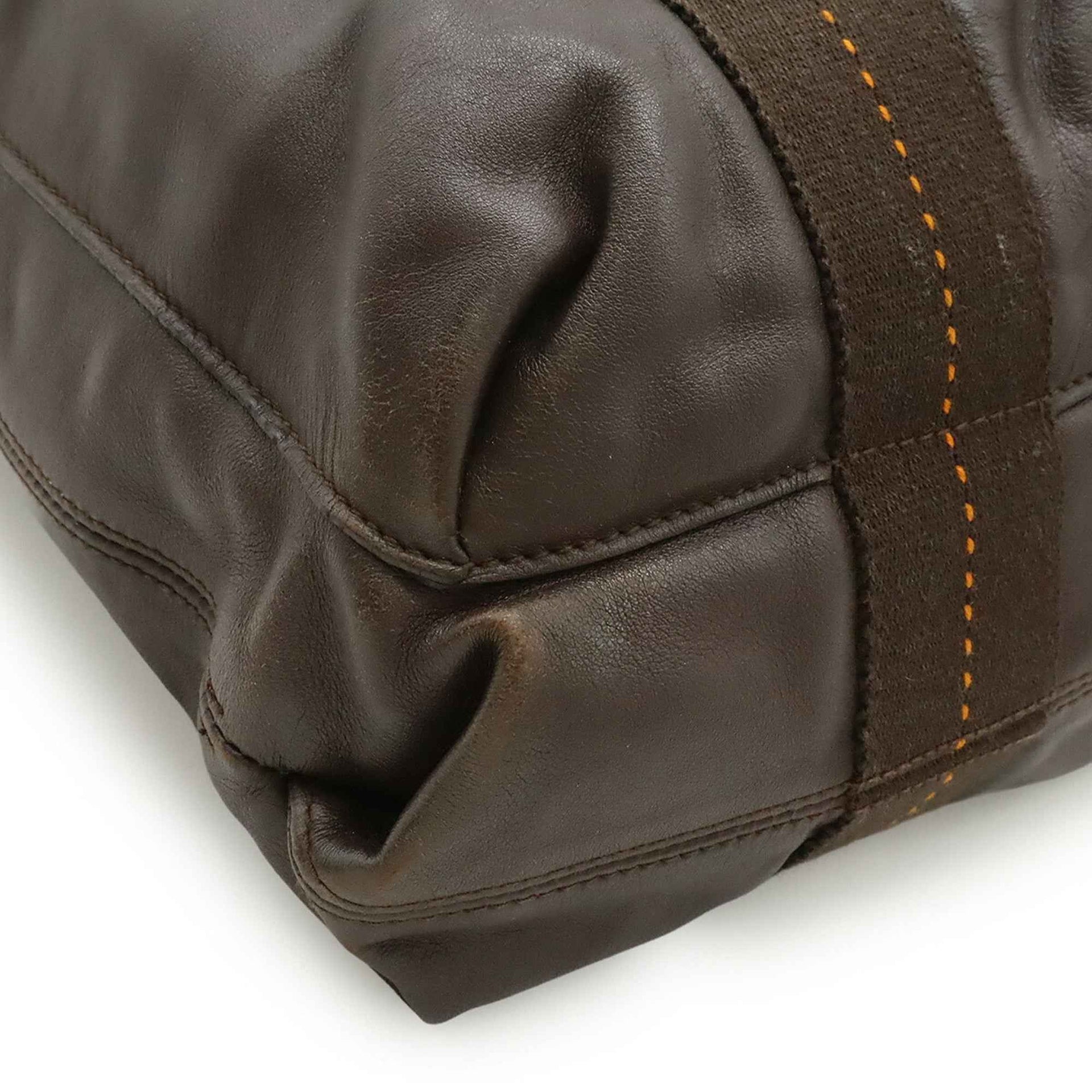 HERMES Caravan Vertical MM Tote Bag/Shoulder Bag in Veau-Derma Leather, Havana and Dark Brown