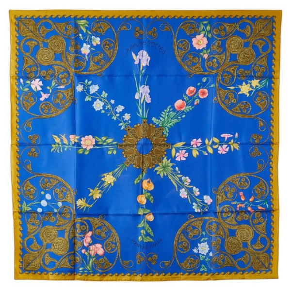 Hermes Carre 90 ARABESQUES Arabesque Scarf Muffler Blue Multicolor Silk Women\'s HERMES