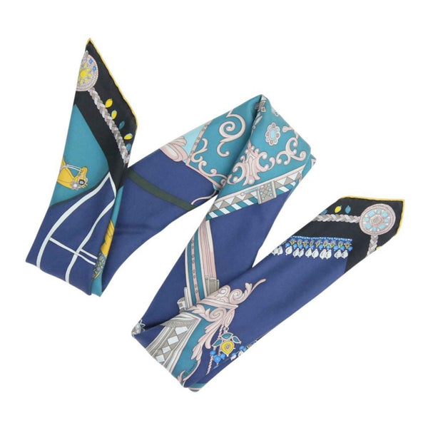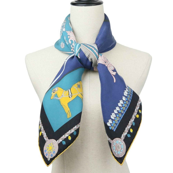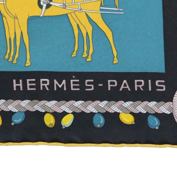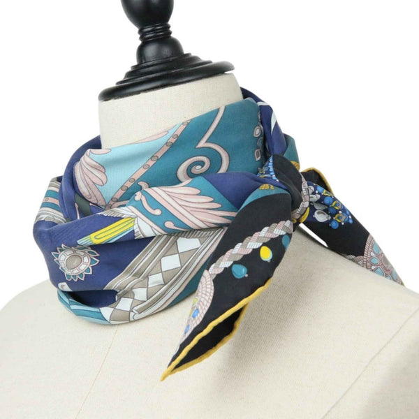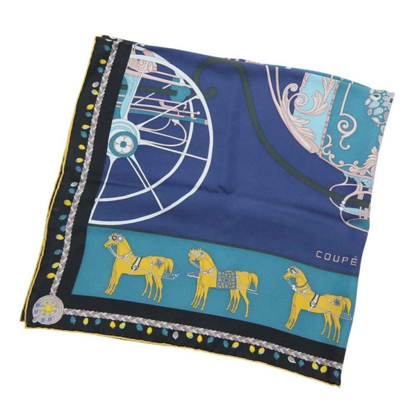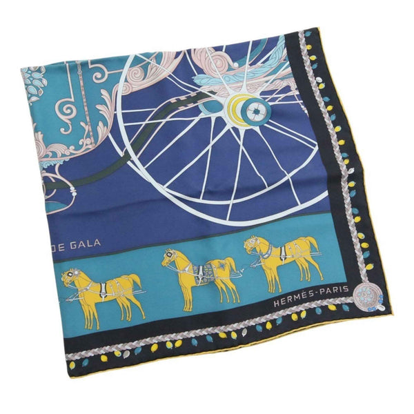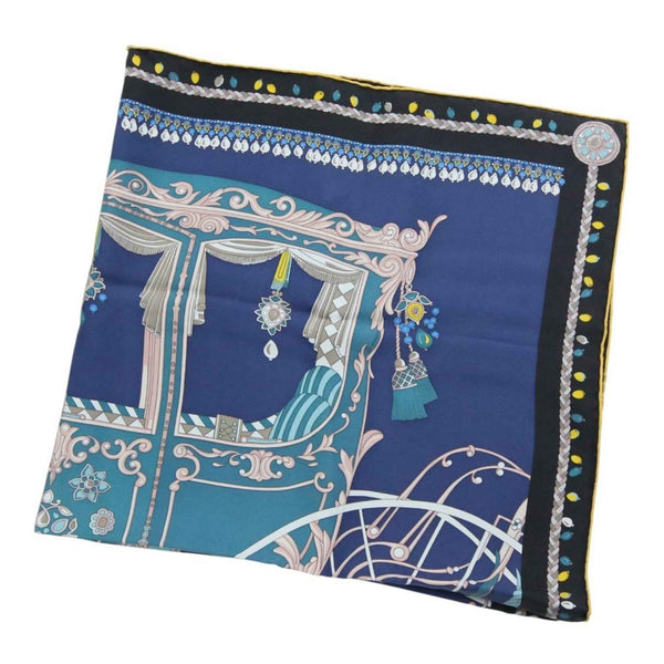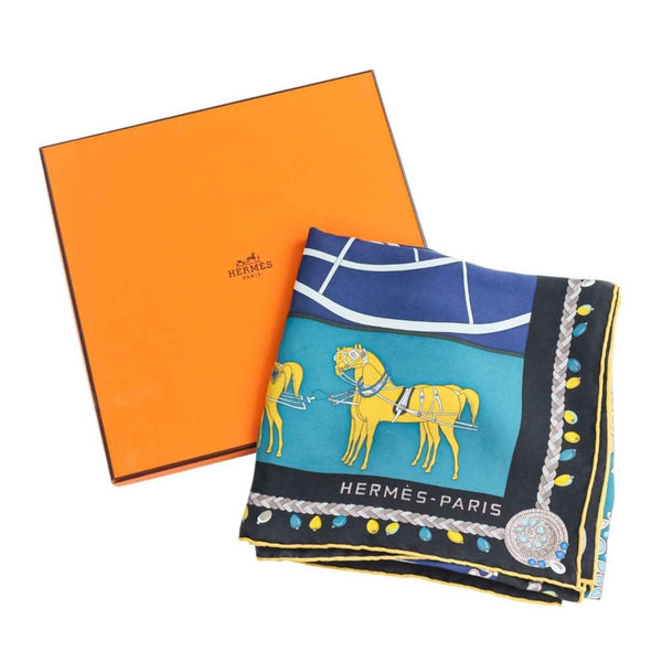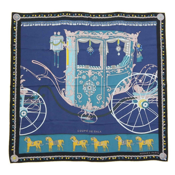 HERMES Carré 90 COUPE DE GALA Large Scarf/Muffler in Blue and Black for Women