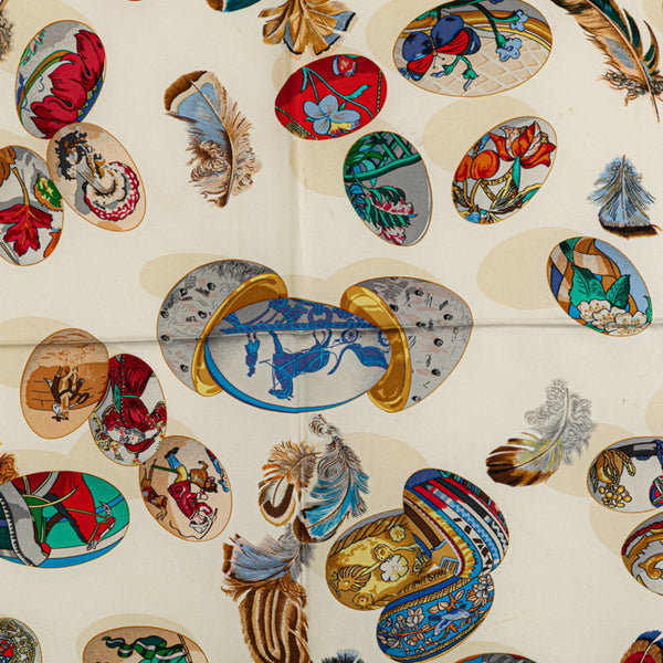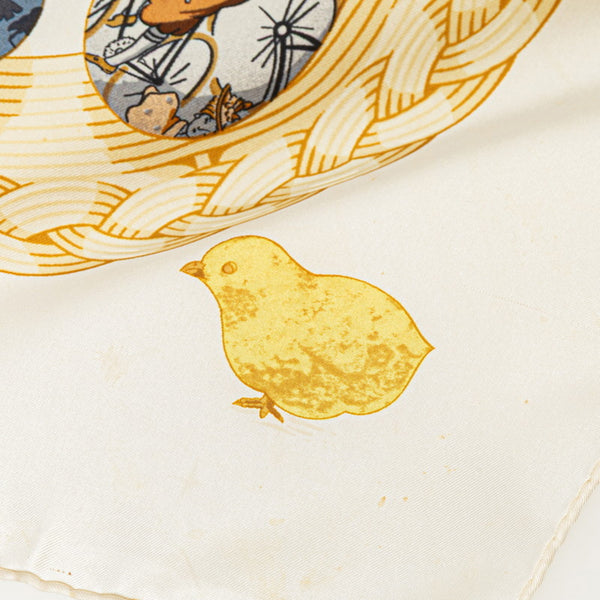 Hermès Carré 90 COUVEE D\'HERMES Chicks Scarf Muffler White Multicolor Silk Women\'s HERMES