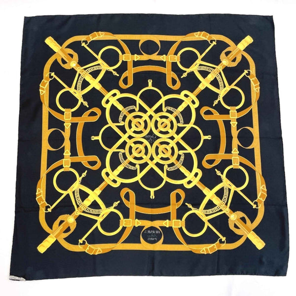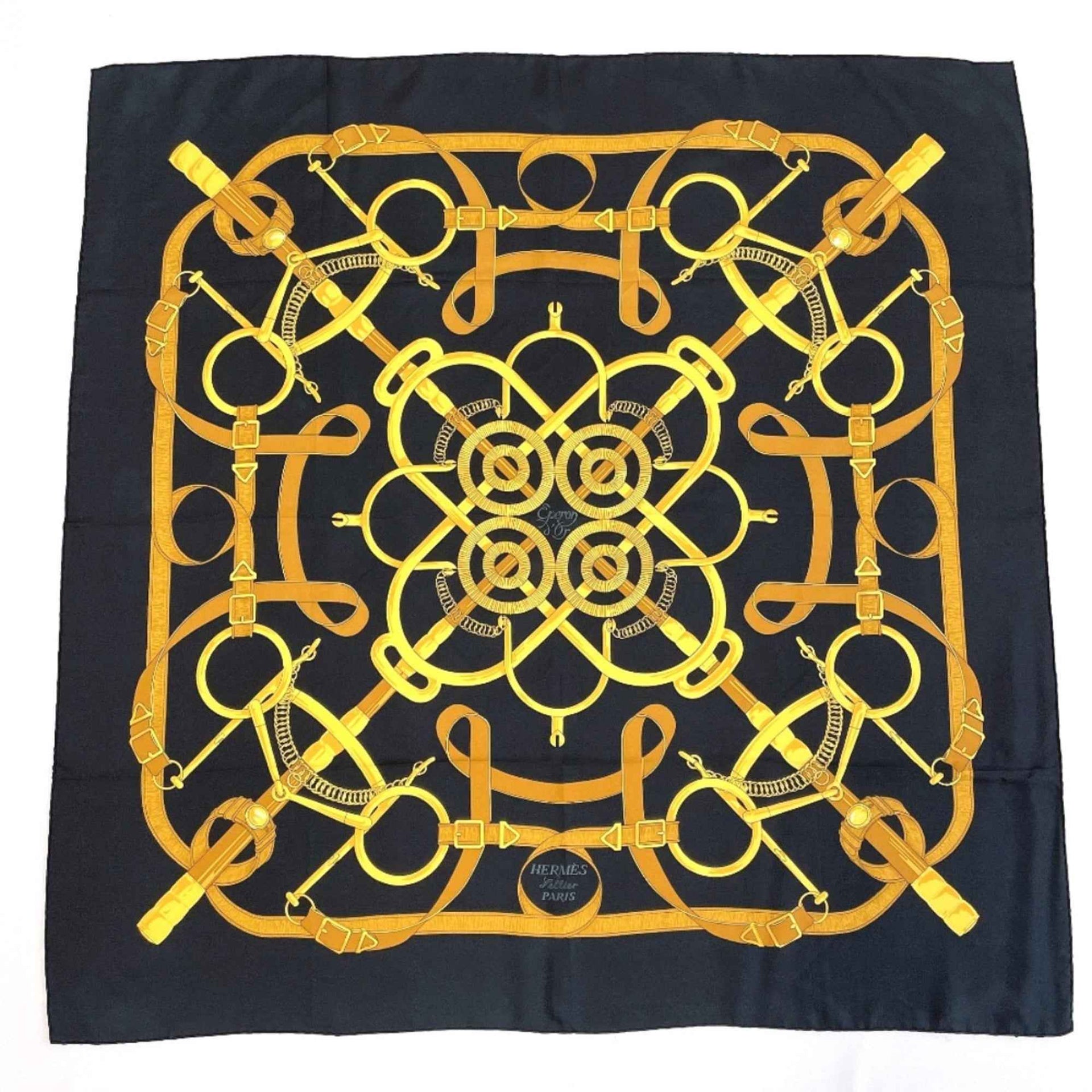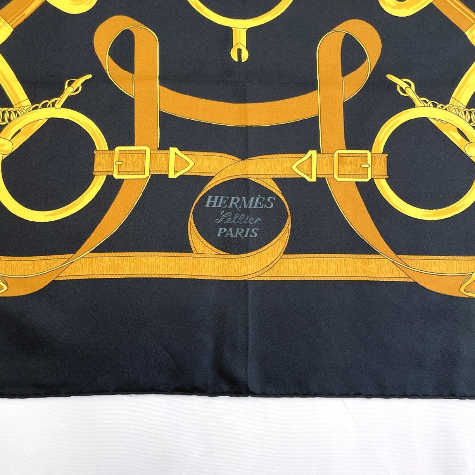 HERMES Carré 90 Eperon dor Golden Spur Scarf, Silk, Black, Women\'s, N5027649
