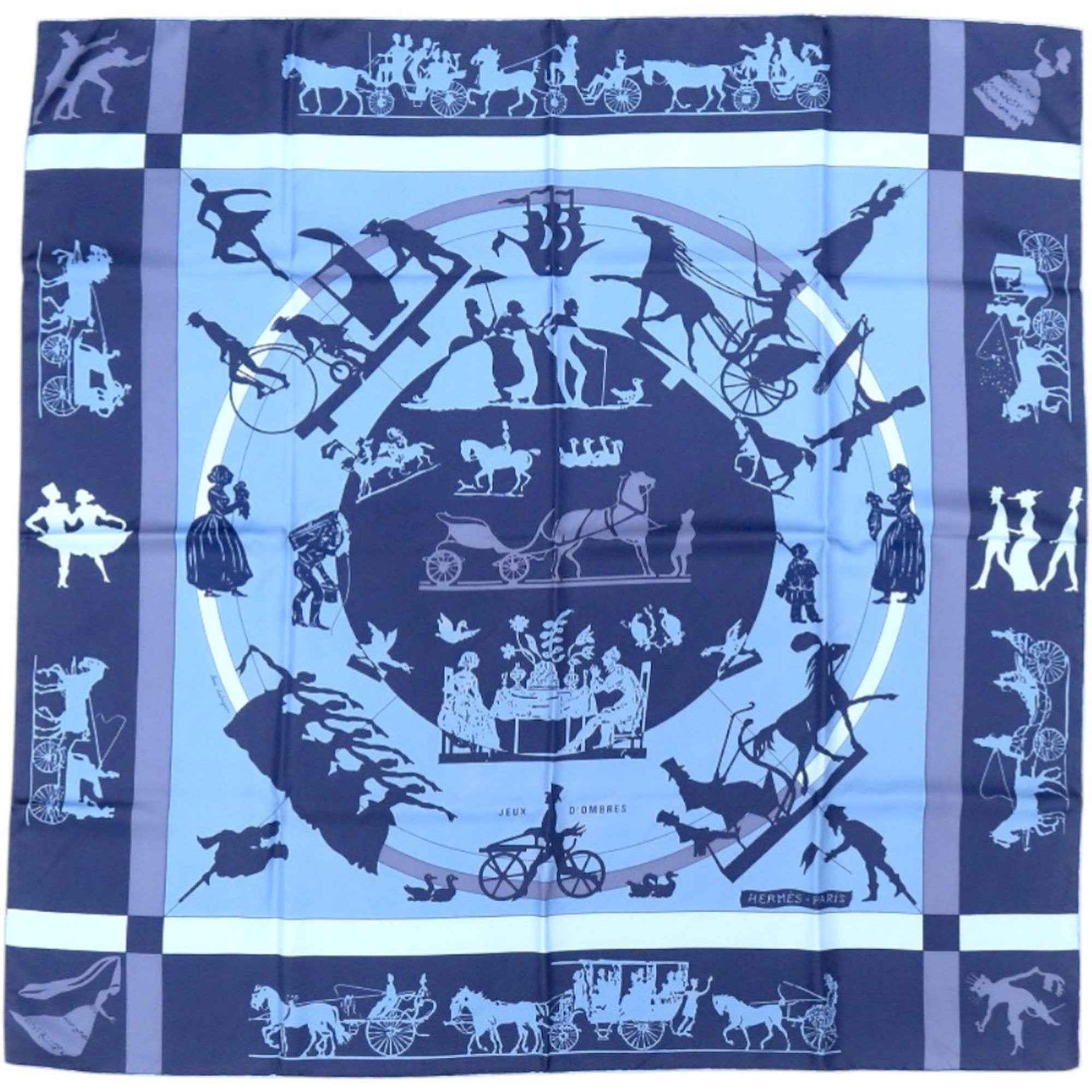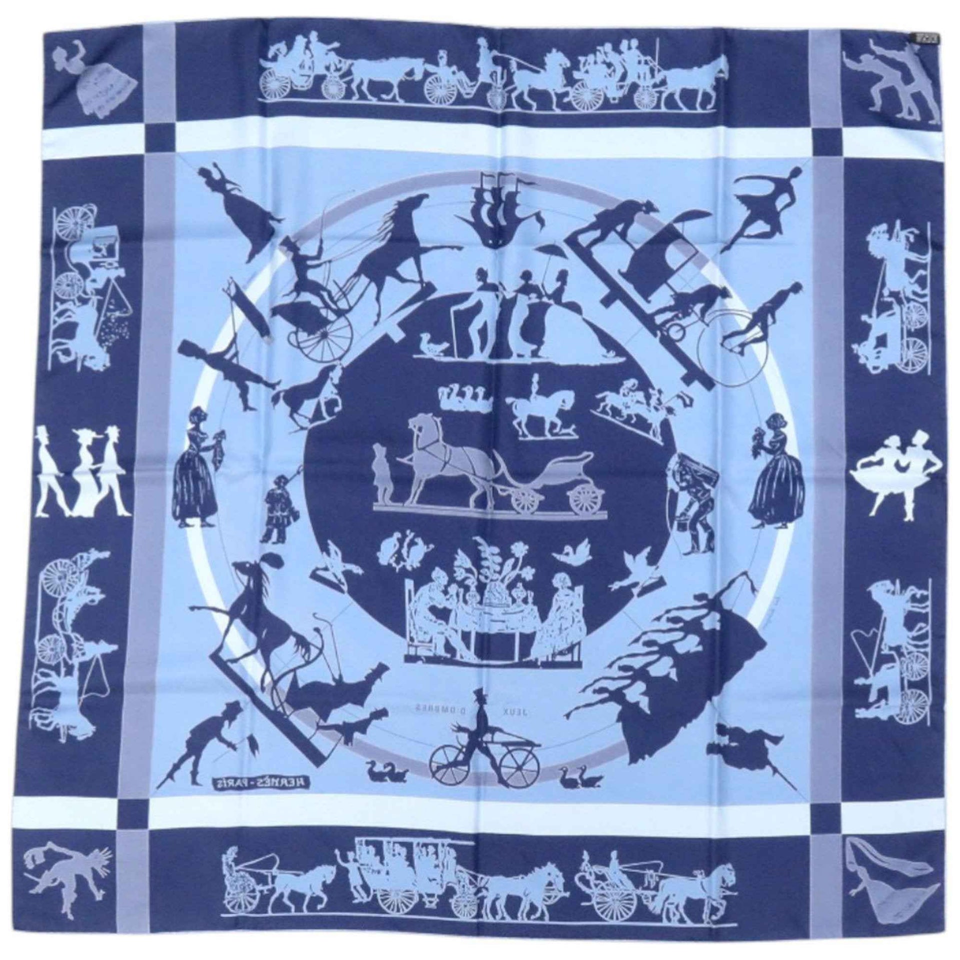 Hermès Carré 90 JEUX D\'OMBRES Shadow Play Silk Blue Scarf Muffler 0143 HERMES