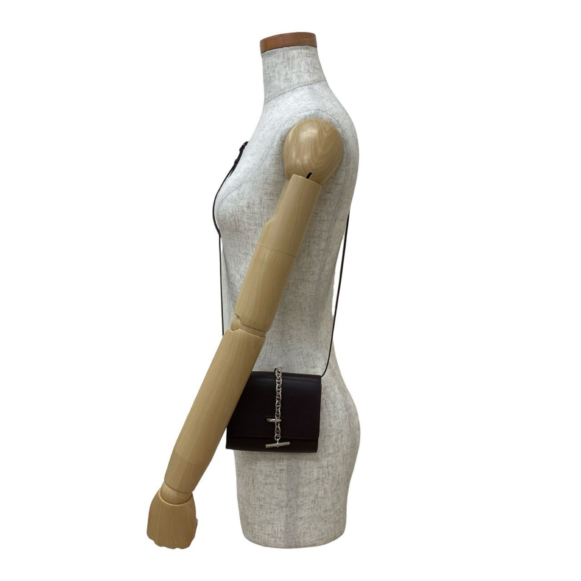 HERMES Chaine d\'Ancre Compact Chevre Leather Mini Shoulder Bag, Brown, 04430