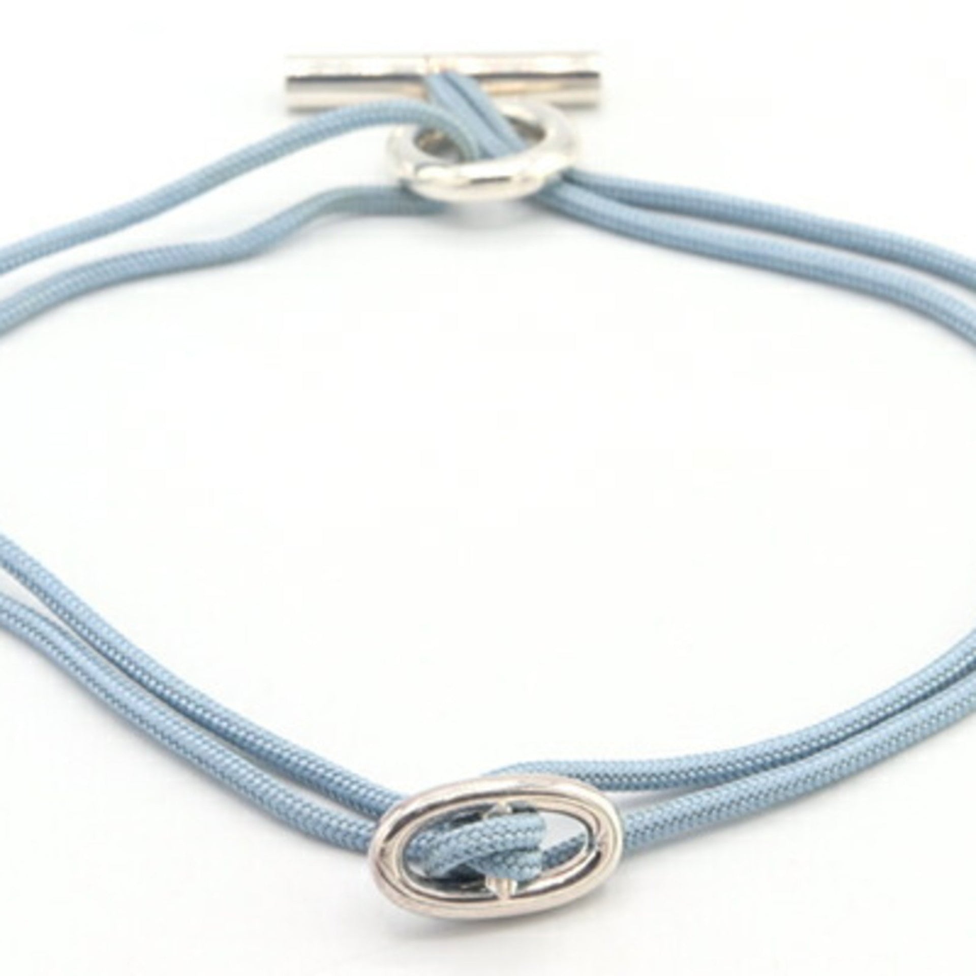 Hermes Choker Chaine d\'Ancre Skipper Silver Light Blue SV Sterling 925 Cotton Cord Necklace Pendant Women\'s HERMES