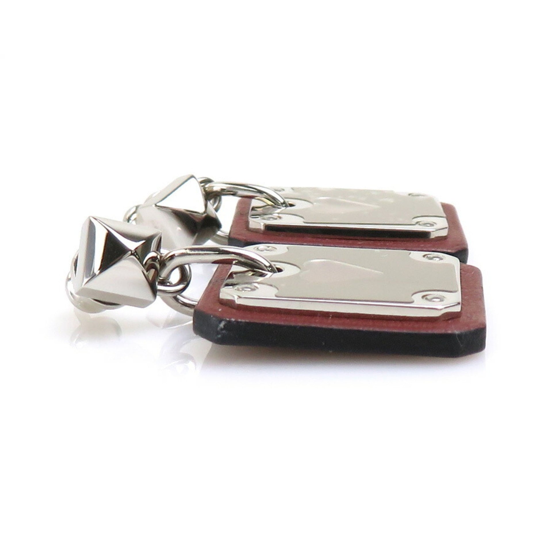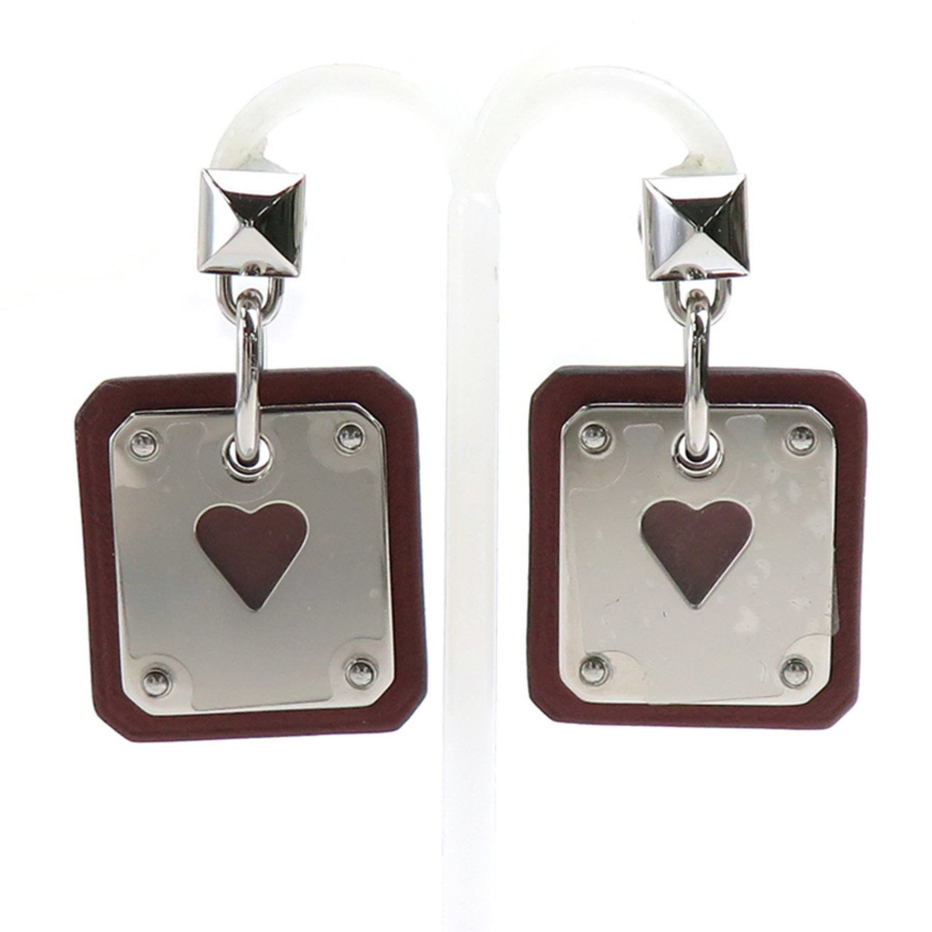 HERMES Earrings As de Coeur Metal Leather Silver Brown Women\'s e60269g