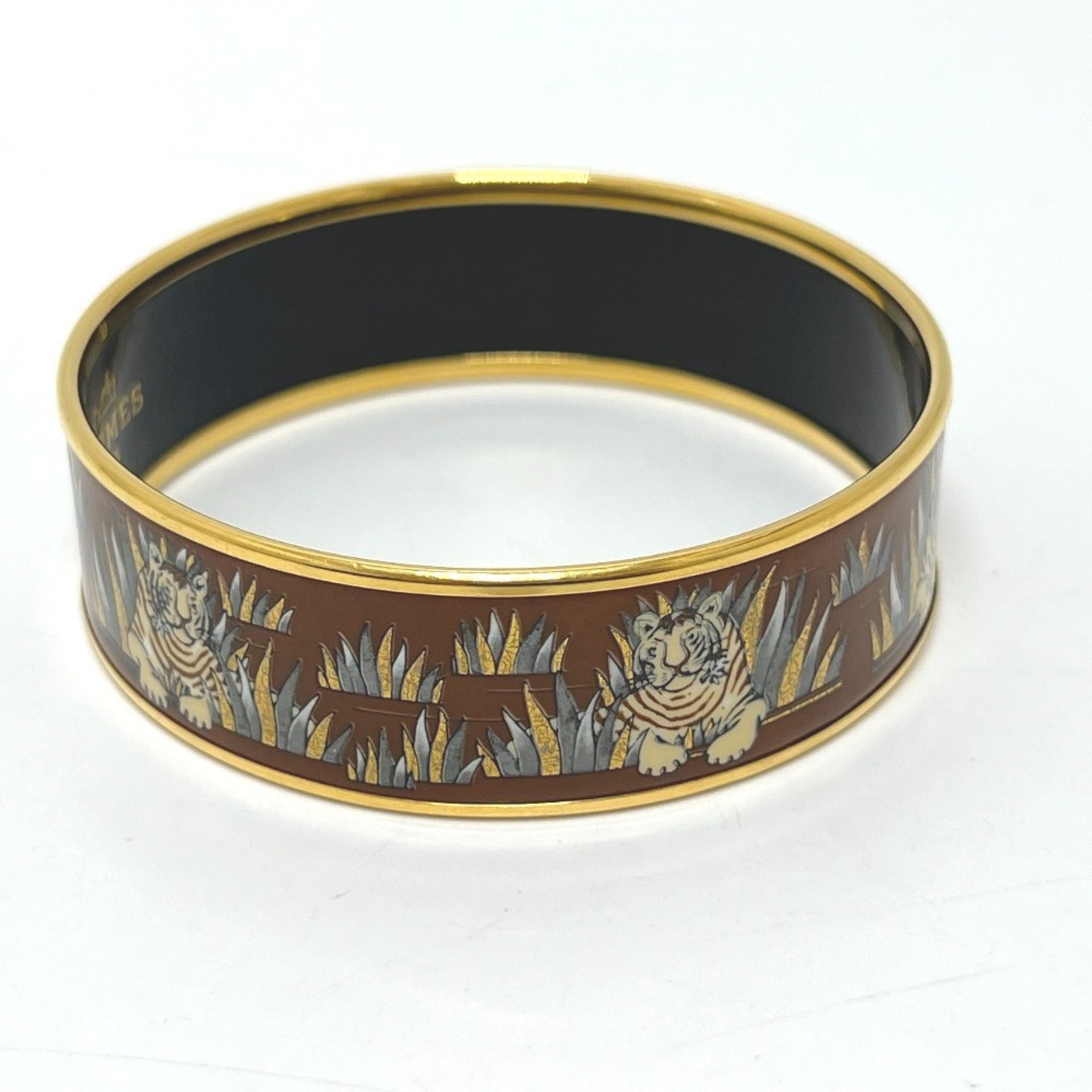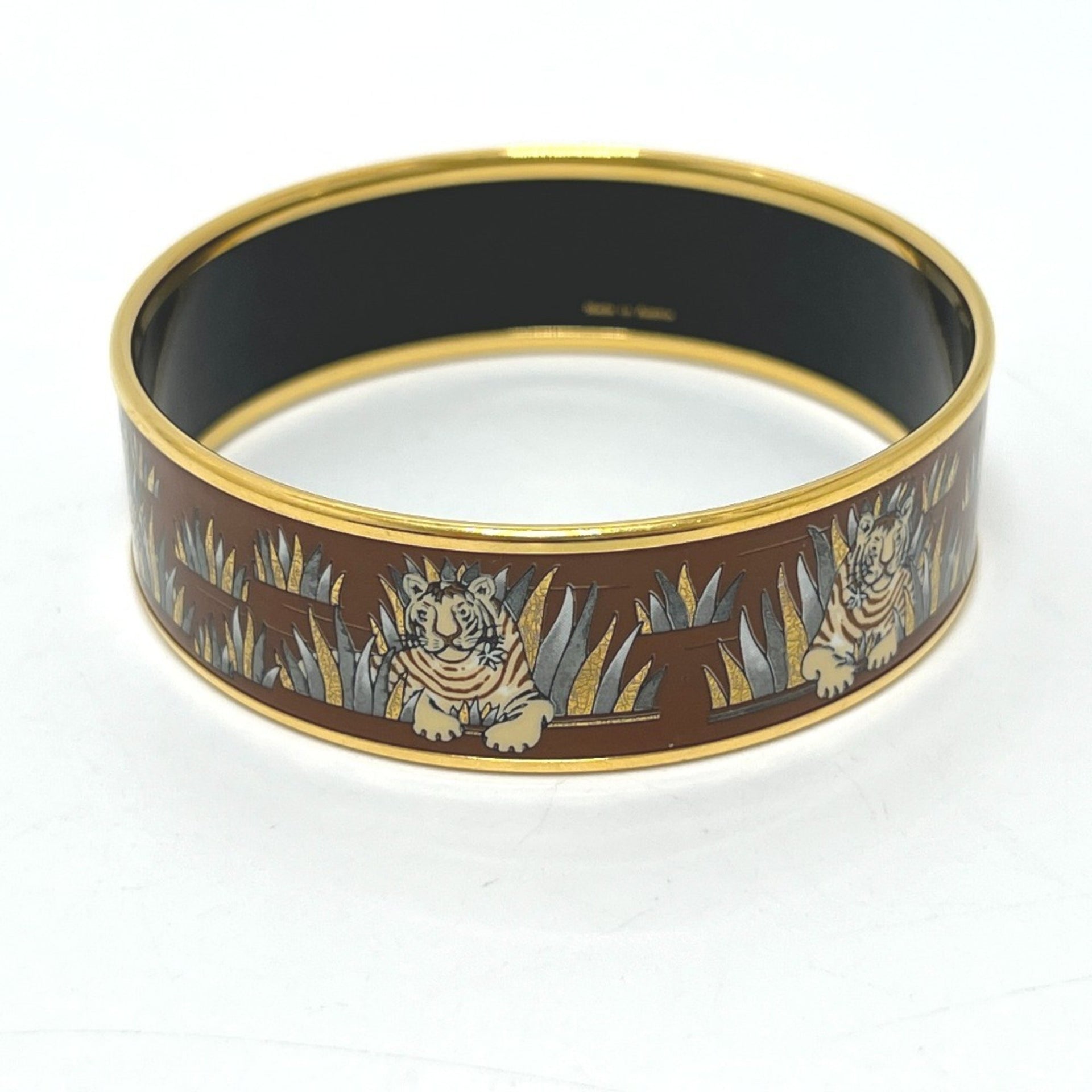 HERMES GM Enameled Tiger Bracelet/Bangle, Enamel, Women\'s, Brown