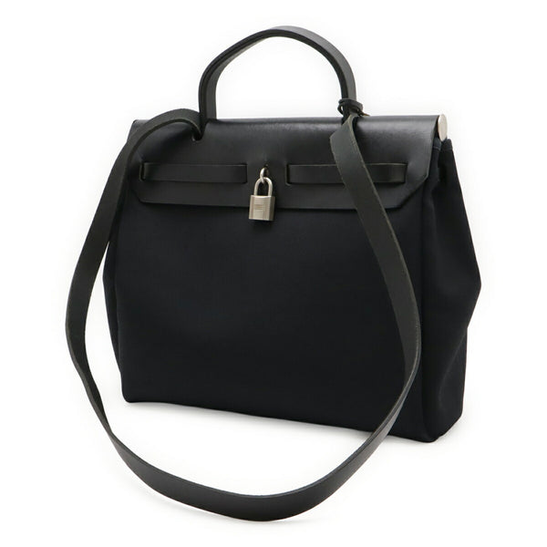 HERMES Hermès Airbag PM Handbag/Shoulder Bag, Toile Officier Leather, Black, E Stamp