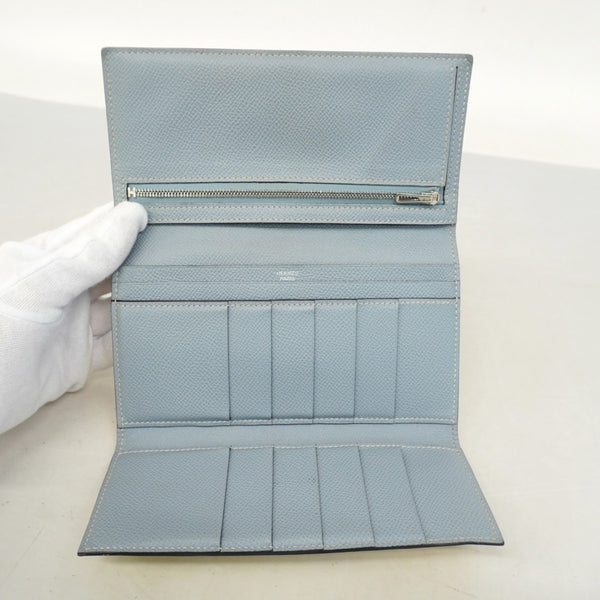 Hermes Hermès Bearn du Puri Verso Tri-fold Long Wallet, Epsom Leather, Blue Run, Q Stamp, Men\'s/Women\'s