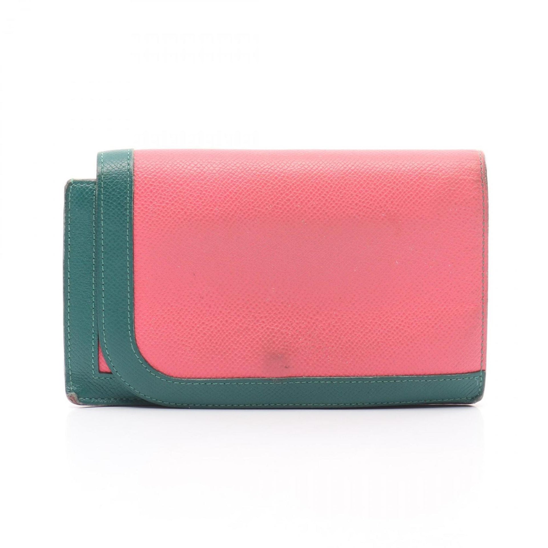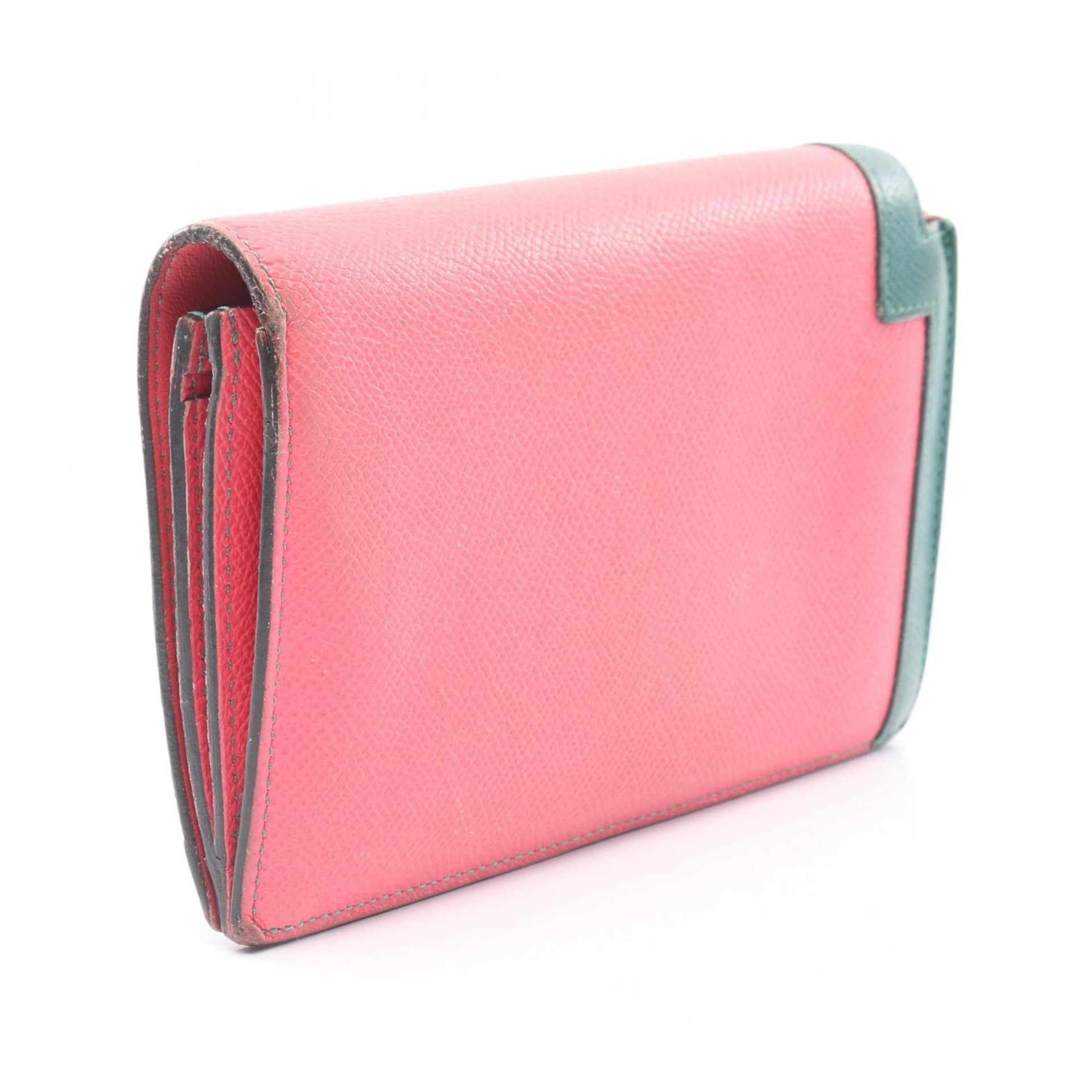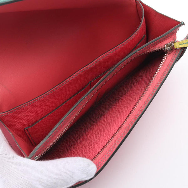 Hermes HERMES Camayle Combine Long Bi-fold Wallet Leather Epsom Women\'s Pink Green Yellow