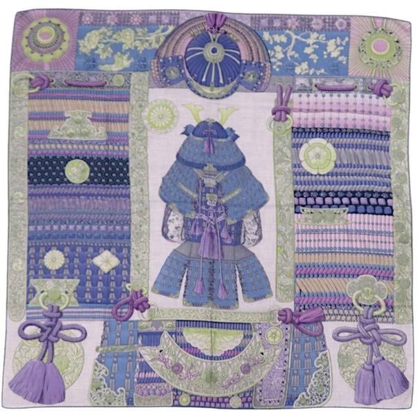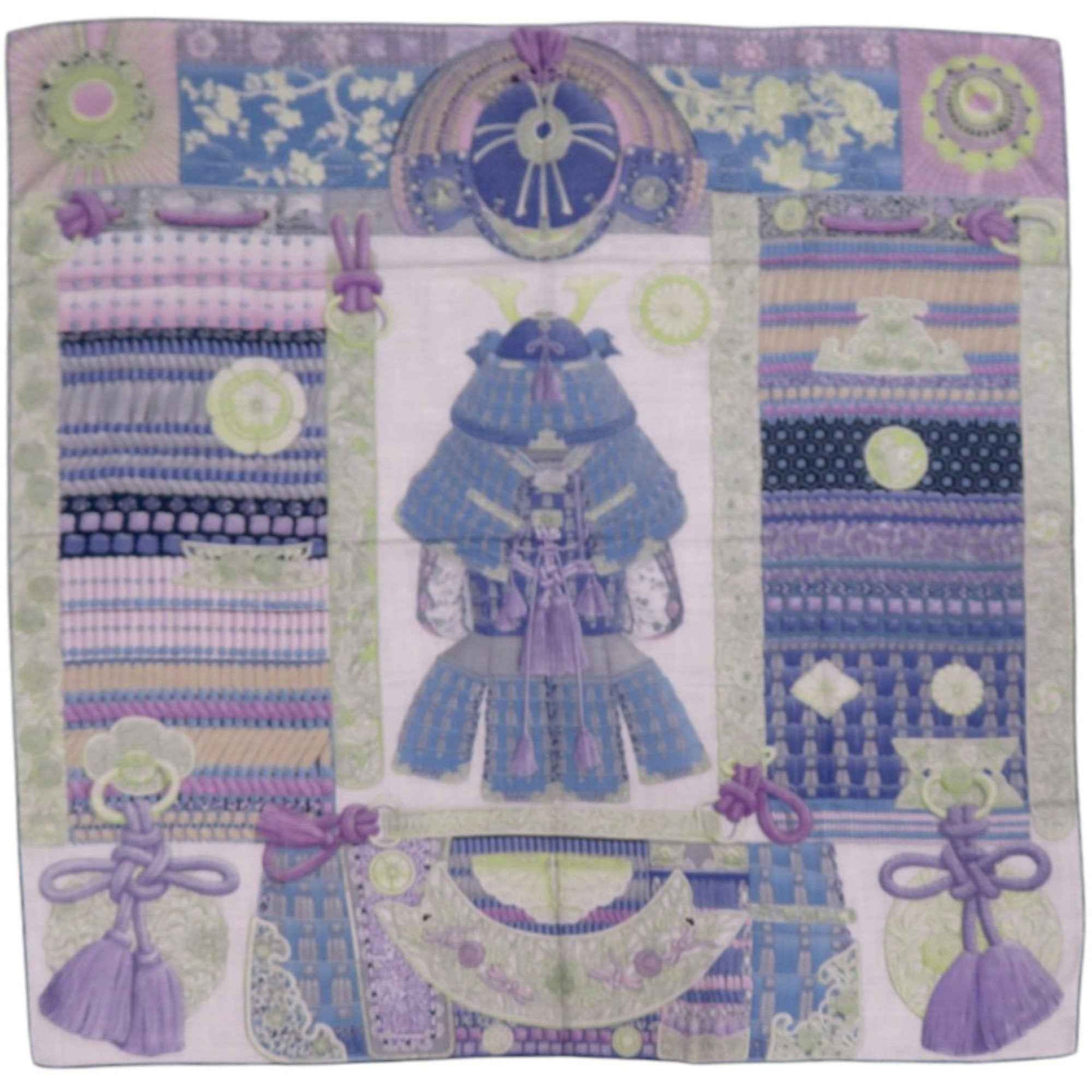 Hermes Hermès Carré 140 Samurai Armor, Parures de Samourais, Cashmere and Silk, Blue Stole, 0480
