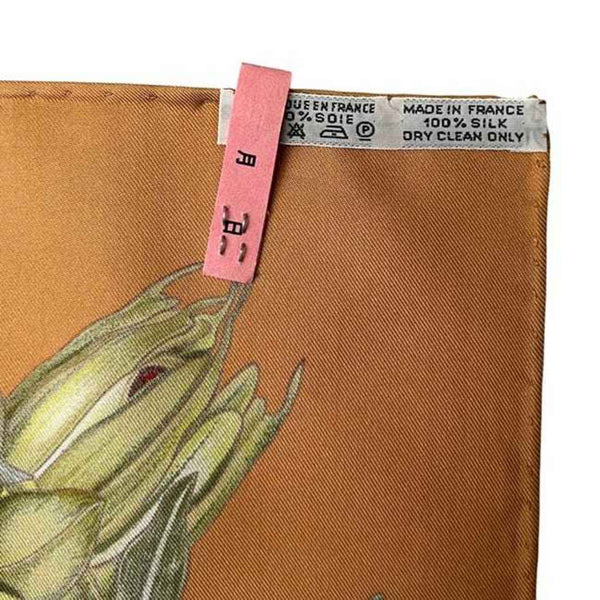Hermes Hermès Carré 90 Scarf (ec-24547) in Orange Beige. PASSIFLORES. 100% Silk. Passion Fruit. Large. Available for Men and Women.