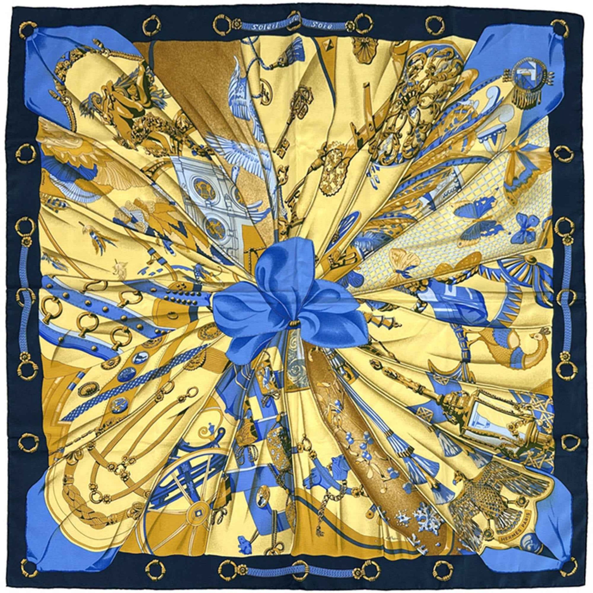 Hermes Hermès Carré 90 \"Soleil de Soie\" Silk Scarf, Women\'s, Navy Blue, Multicolor, Large