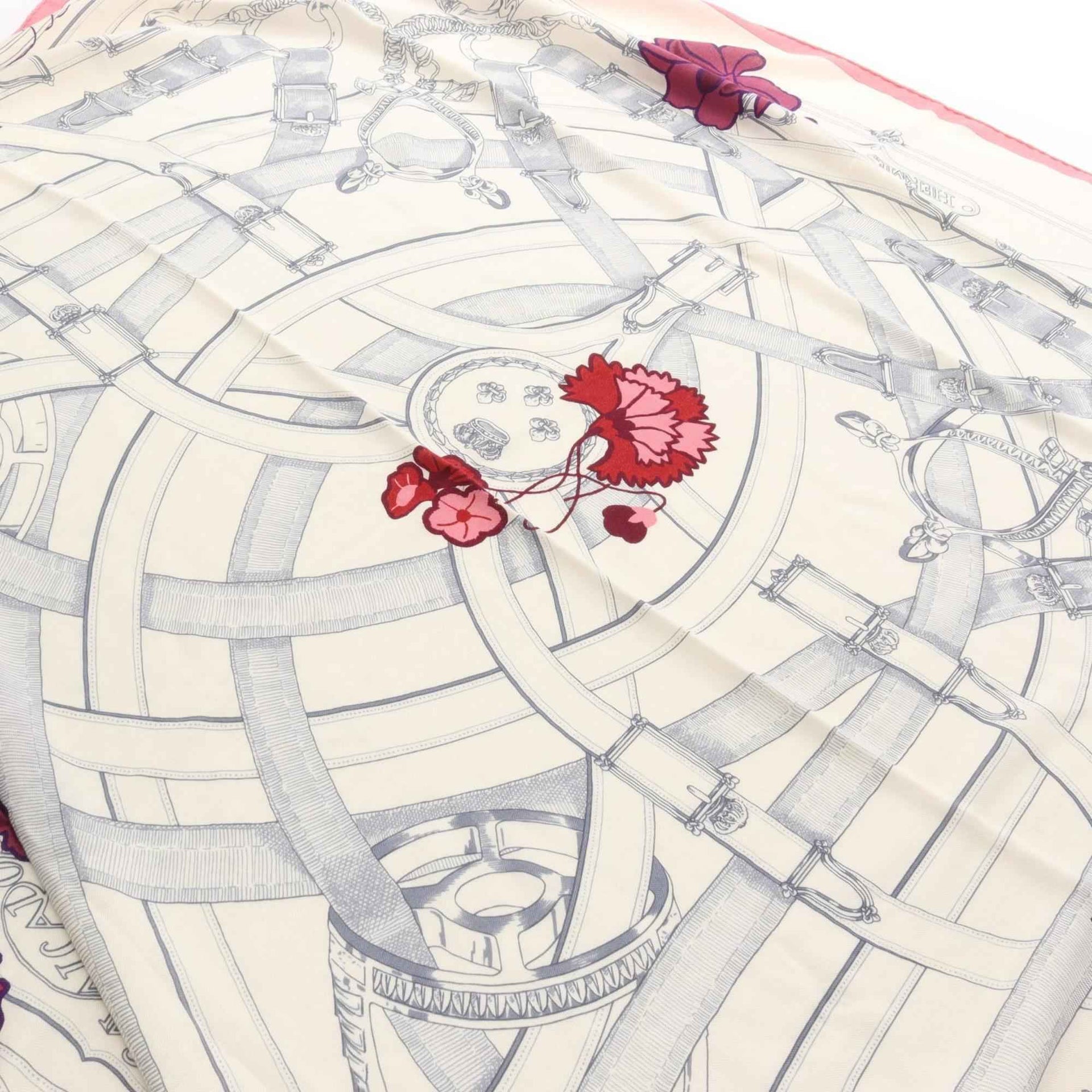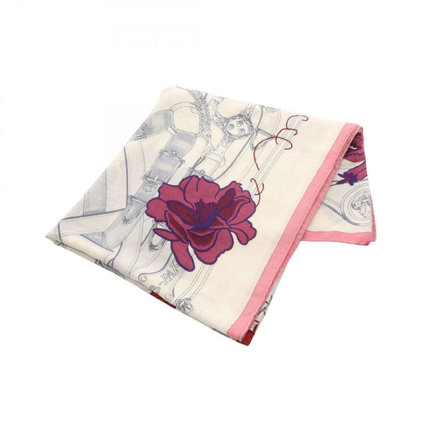 Hermes Hermès Carré Jean 140 CAVALCADOUR Fleuri Scarf, Silk, Cashmere, Women\'s, Ivory, Pink, Multicolor