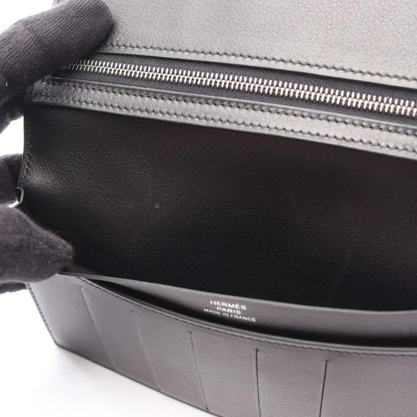 Hermes Hermès Citizen Twill Long Silkin Bifold Wallet Leather Evercolor Men\'s Black