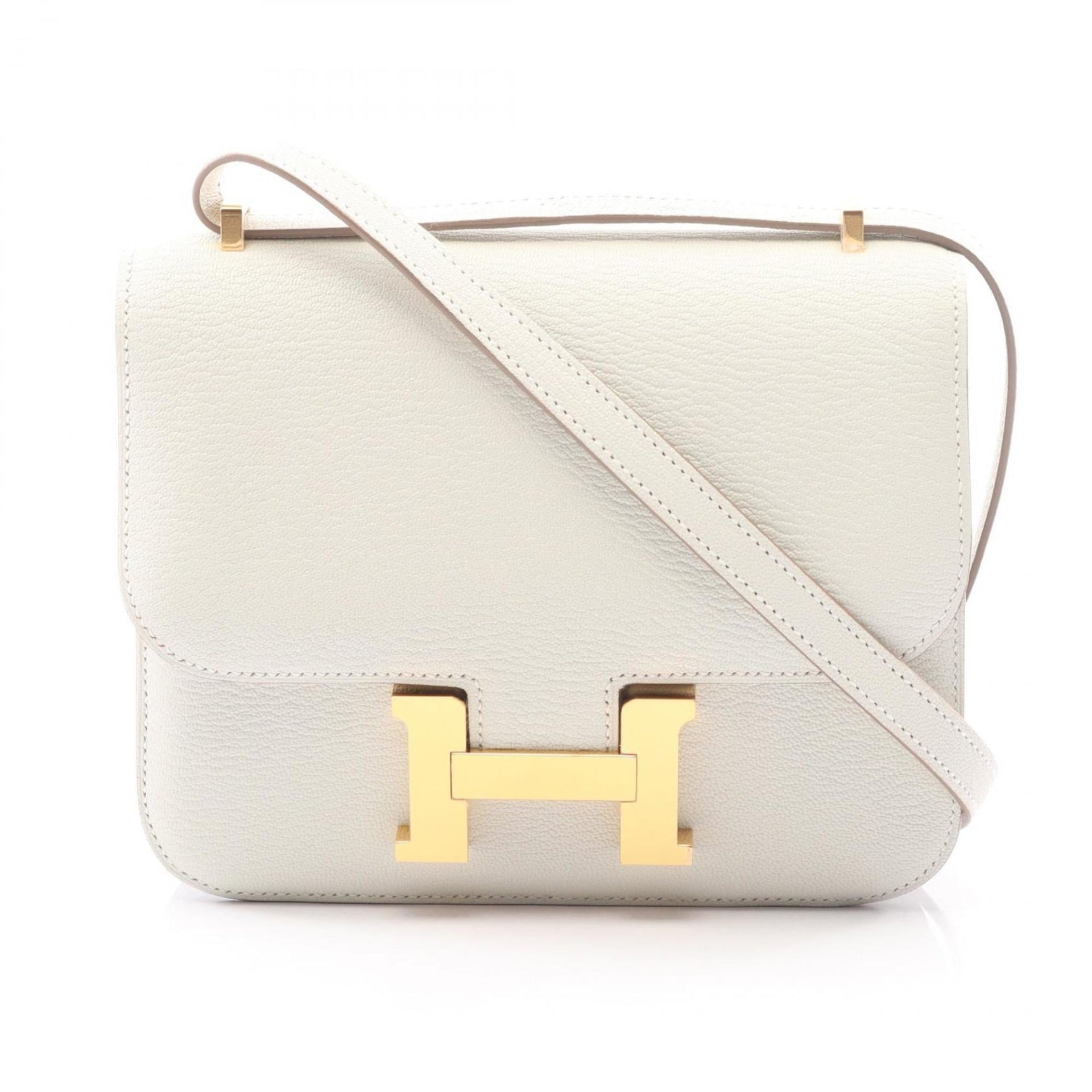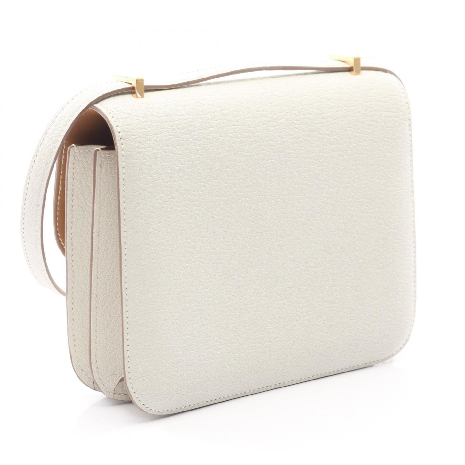 Hermes Hermès Constance 3 Mini Verso Gripere Biscuit Shoulder Bag, Chevre, Women\'s, White