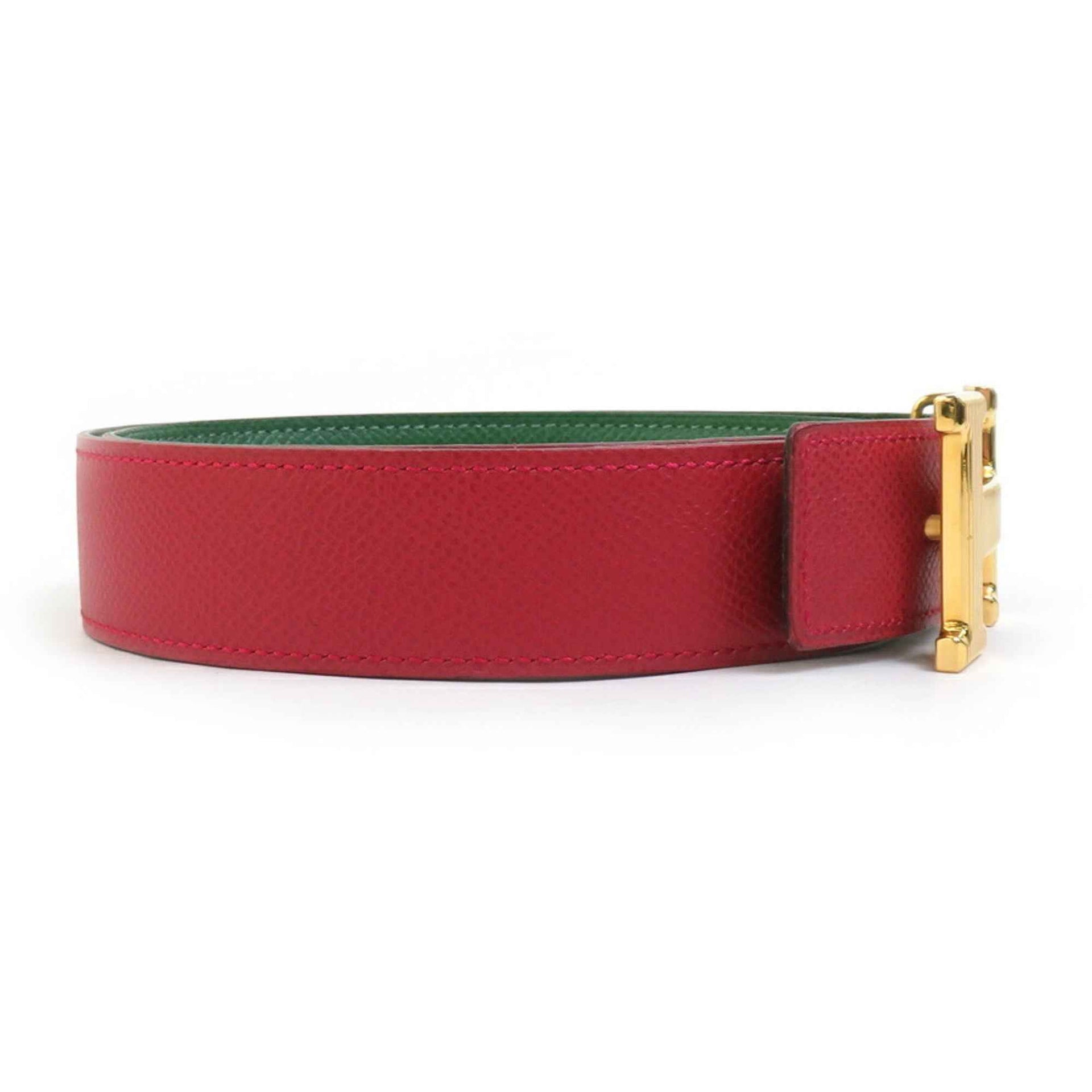 Hermes Hermès Constance Reversible Belt, Couchvel, Red x Green, Gold, Women\'s, h31425a