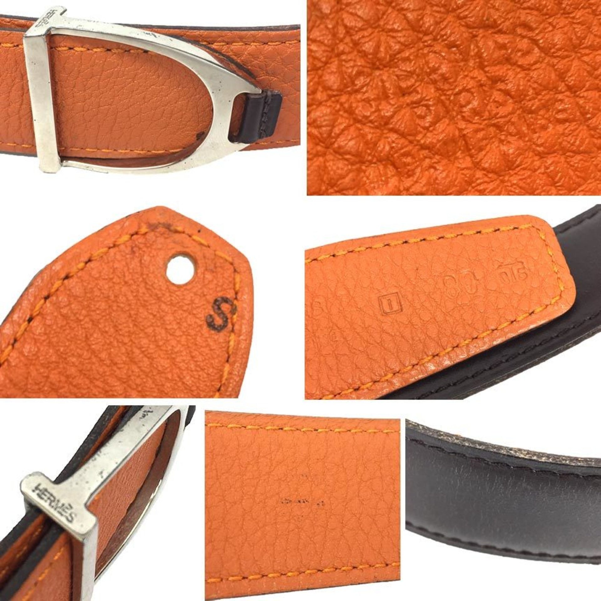 Hermes HERMES Etrier Belt Size 80 □I Engraved Leather Reversible Orange x Brown Small